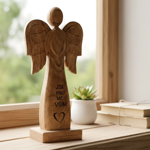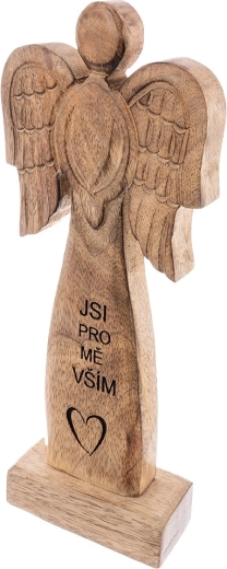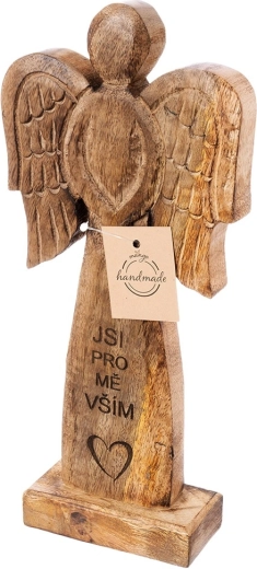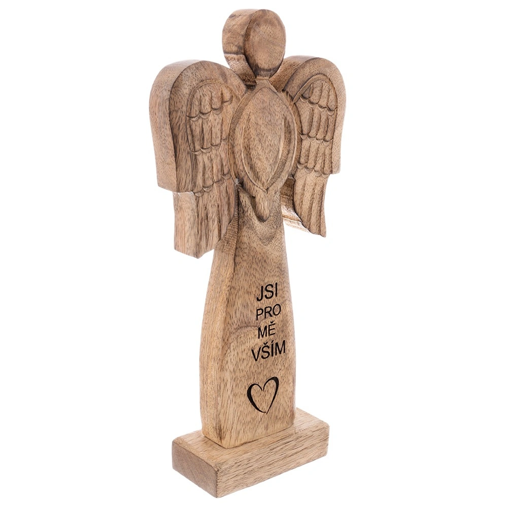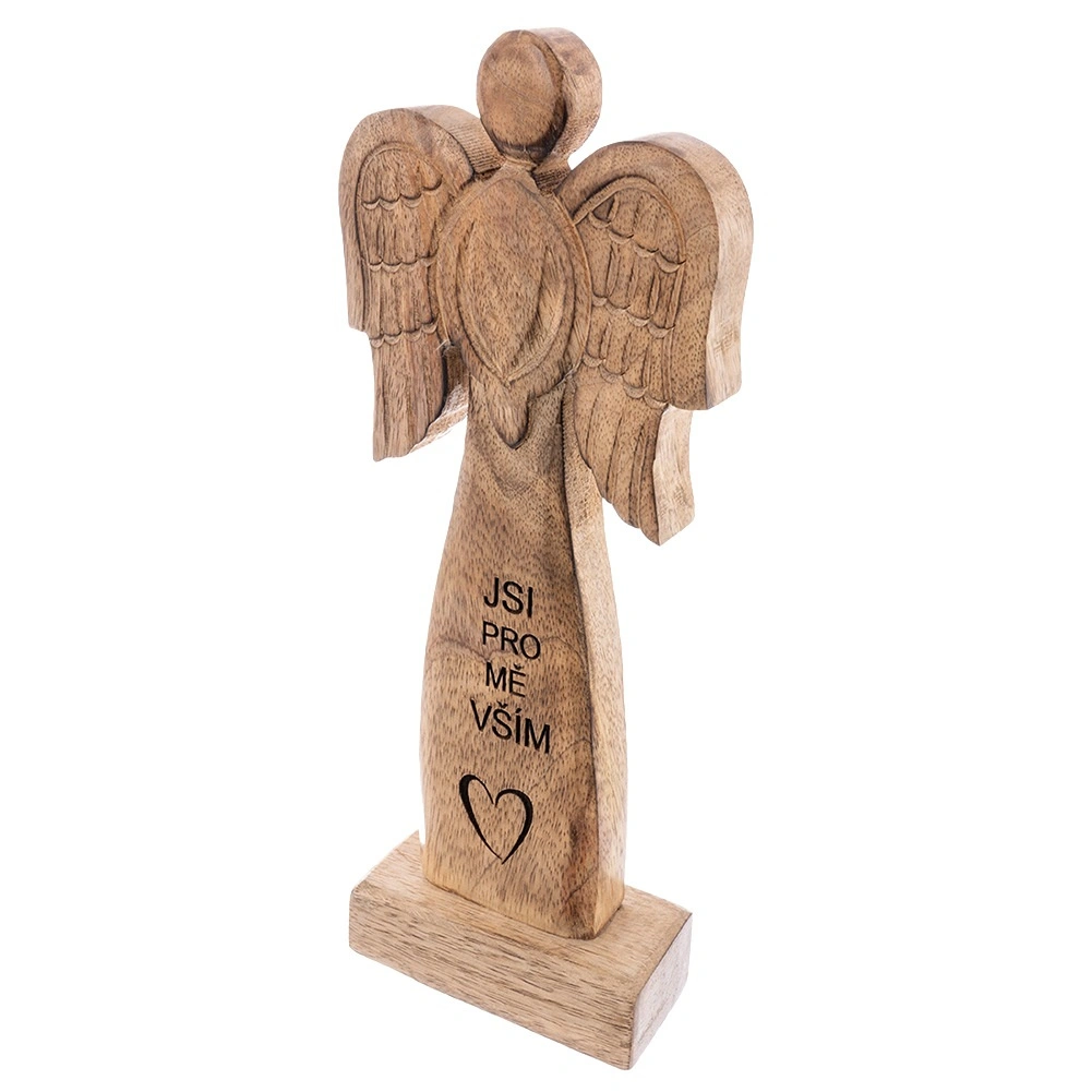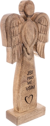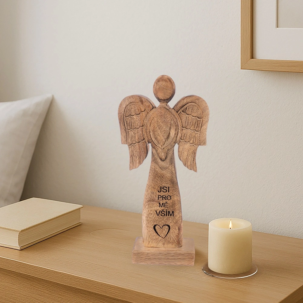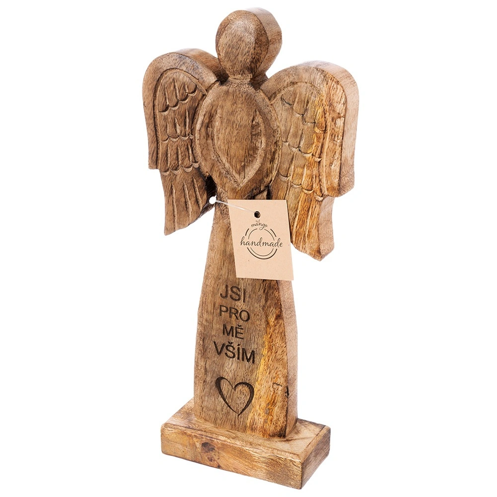 Ta efektowna figurka anioła wykonana jest z naturalnego drewna mango i uzupełniona metalowymi skrzydłami w czarnej odsłonie. Dzięki neutralnym barwom łatwo wpisze się w nowoczesne i rustykalne wnętrza, dodając im subtelny, symboliczny akcent.