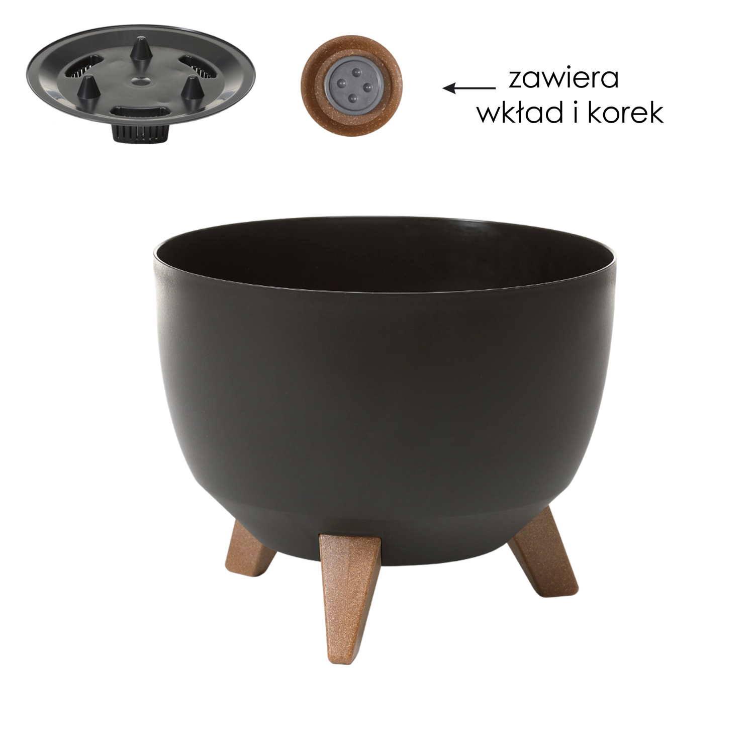 Stylowa misa na kwiaty Roma oferuje czyste linie i ponadczasowy wygląd, który świetnie pasuje do nowoczesnych wnętrz oraz na balkon. Czarna matowa powierzchnia i nóżki z efektem drewna podkreślają zieleń, a jednocześnie unoszą naczynie dla lepszego odpływu i cyrkulacji powietrza.