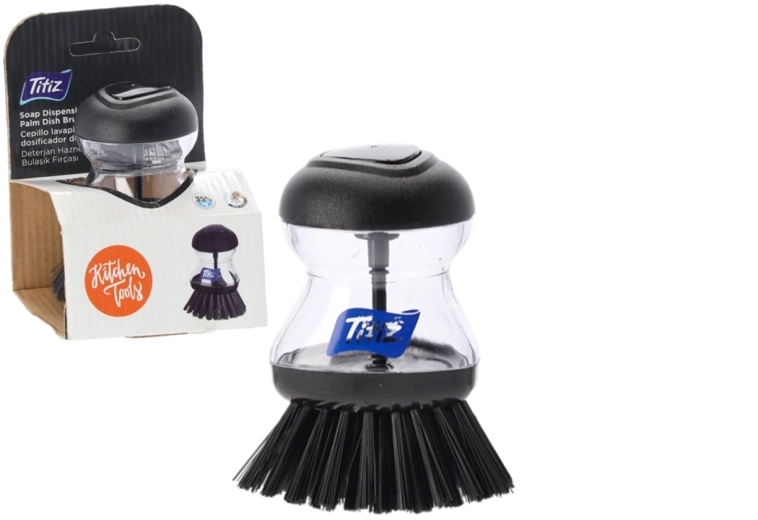 Praktyczna szczotka do naczyń z wbudowanym dozownikiem płynu do mycia, zapewniająca szybkie i higieniczne mycie. Ergonomiczny uchwyt gwarantuje wygodne trzymanie, odkręcany zbiornik na środek umożliwia łatwe uzupełnianie, a przycisk do precyzyjnego dozowania oszczędza czas i detergent.