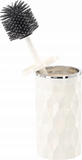 Każdy element ma przemyślane wymiary dla praktycznego użytkowania: kompaktowy kosz dla łatwej obsługi, higieniczna szczotka do WC z osłoną, dozownik z wygodną pompką, organizer na szczoteczki i pastę do zębów oraz mydelniczka, która utrzymuje mydło w kostce na miejscu.