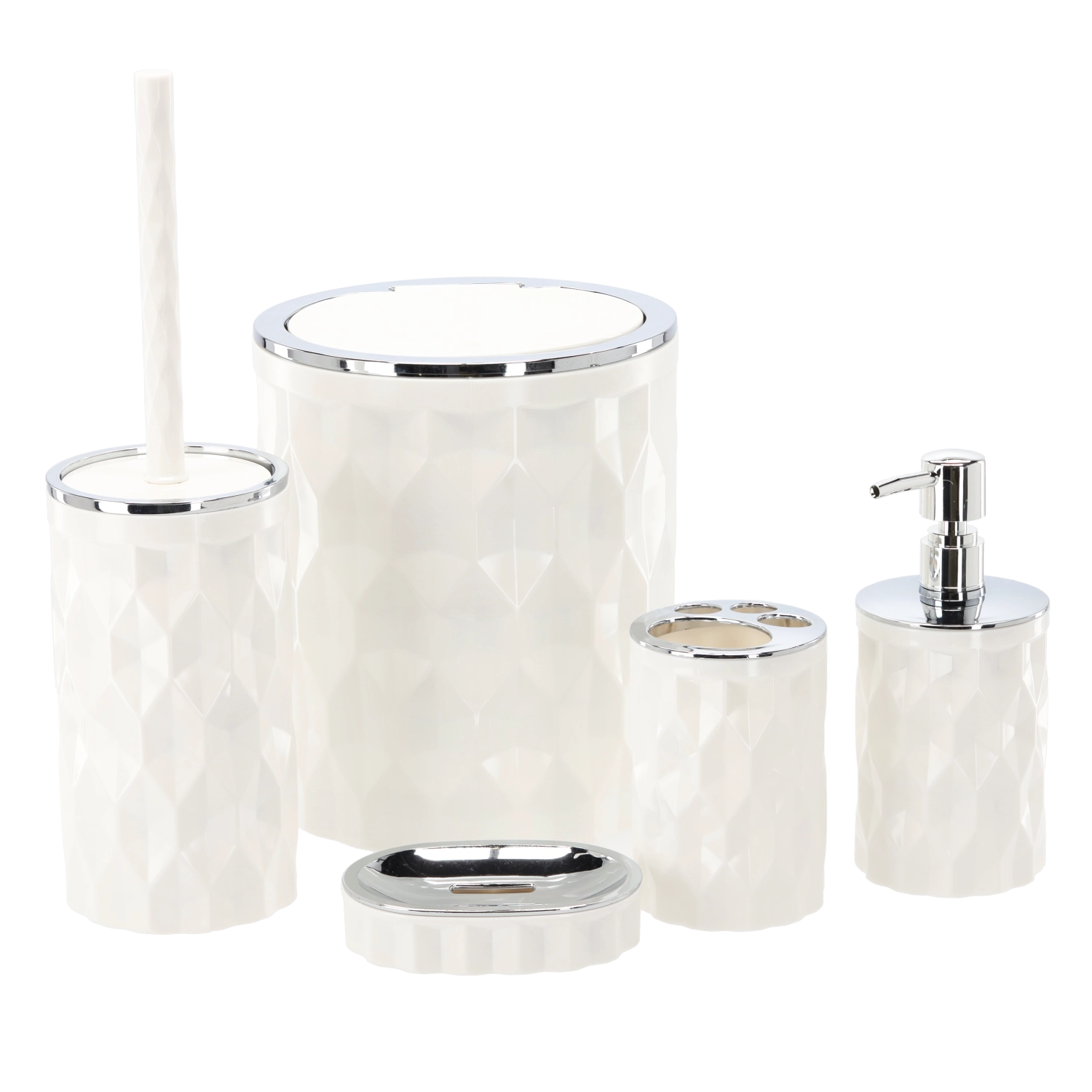 Okrągły pięcioczęściowy zestaw akcesoriów łazienkowych – biały