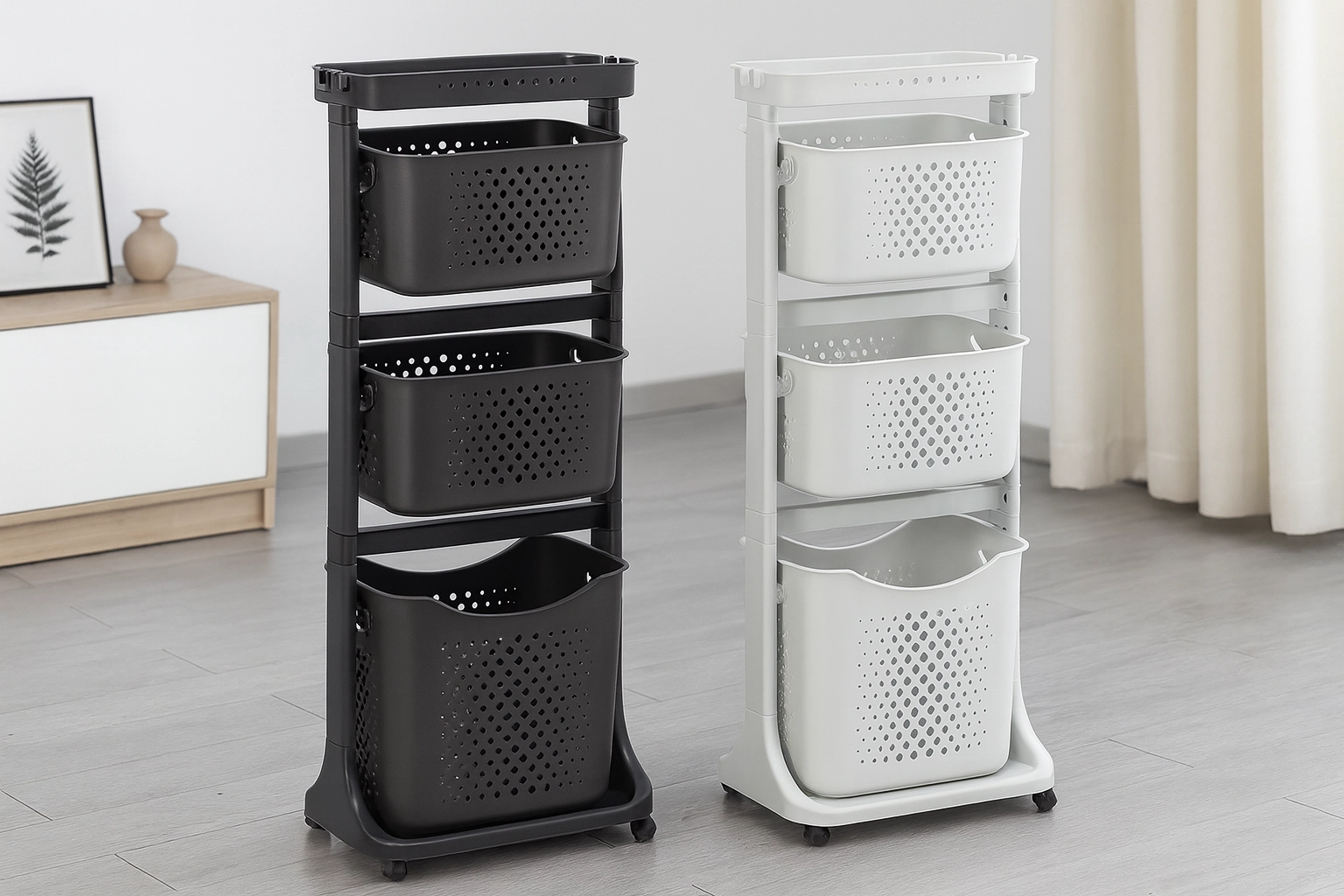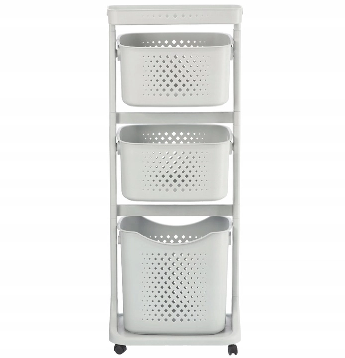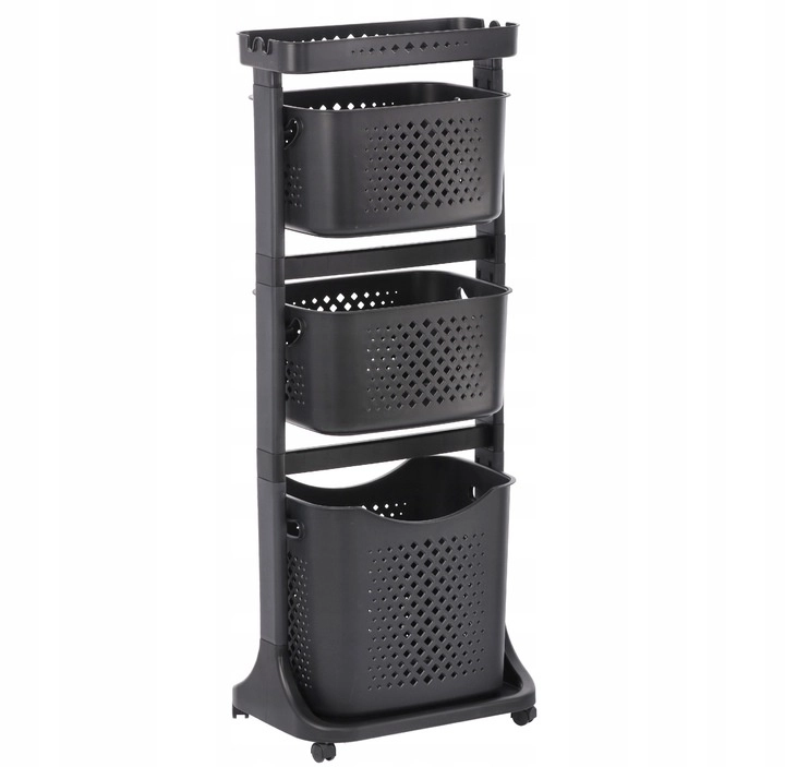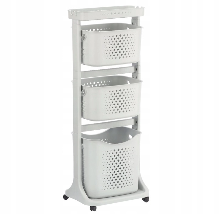 Praktyczny i stylowy pomocnik do każdego domu: mobilny regał z czterema przestronnymi koszami, górną półką odkładczą oraz kółkami ułatwiającymi przenoszenie. Dzięki ażurowym perforowanym koszom, smukłej pionowej konstrukcji i uniwersalnemu wzornictwu doskonale wpasuje się do łazienki, kuchni, pralni, pokoju dziecięcego czy biura.