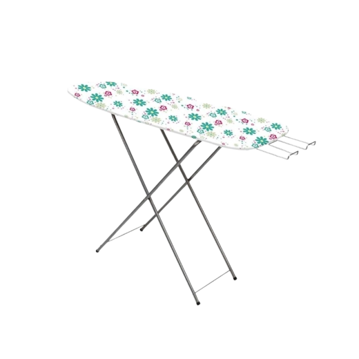 Pokrowiec z 100% bawełny z 3‑mm warstwą pianki tworzy gładką powierzchnię, która chroni tkaniny i przyspiesza pracę. Deska jest lekka, łatwo się składa, a ochronne plastikowe nasadki na nogach zapobiegają ślizganiu się i uszkodzeniu podłogi. Sprytnie zaprojektowana półka na żelazko może być wsuwana pod deskę, więc nie zajmuje miejsca podczas przechowywania.