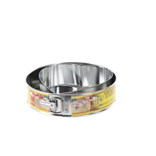 Praktyczna tortownica o średnicy 24 cm z łatwym wyjmowaniem dzięki bocznemu zatrzaskowi i wyjmowanemu dnu jest idealna do pieczenia tortów i ciast. Wkładka w kształcie serca pozwala tworzyć desery na specjalne okazje. Solidna blacha ocynkowana zapewnia trwałość i długą żywotność, a fakturowane dno ogranicza przypalanie i ułatwia czyszczenie.