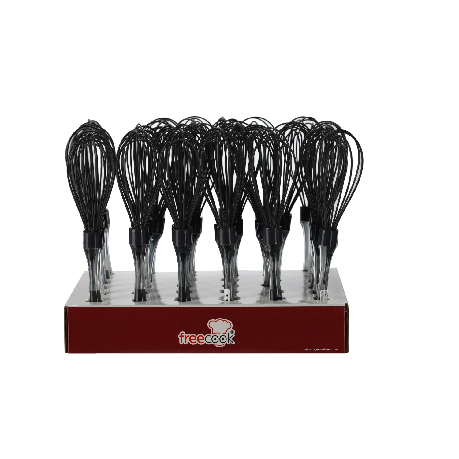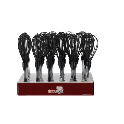 Praktyczna silikonowa trzepaczka o długości 26 cm jest idealna do codziennego gotowania i pieczenia. Dzięki ergonomicznemu kształtowi i wytrzymałej silikonowej powierzchni ubija i miesza bez ryzyka uszkodzenia naczyń. Jest odporna na wysoką temperaturę, bezpieczna dla powłok nieprzywierających i można ją myć w zmywarce. Dostępna w trzech kolorach, aby dopasować do Twojej kuchni.