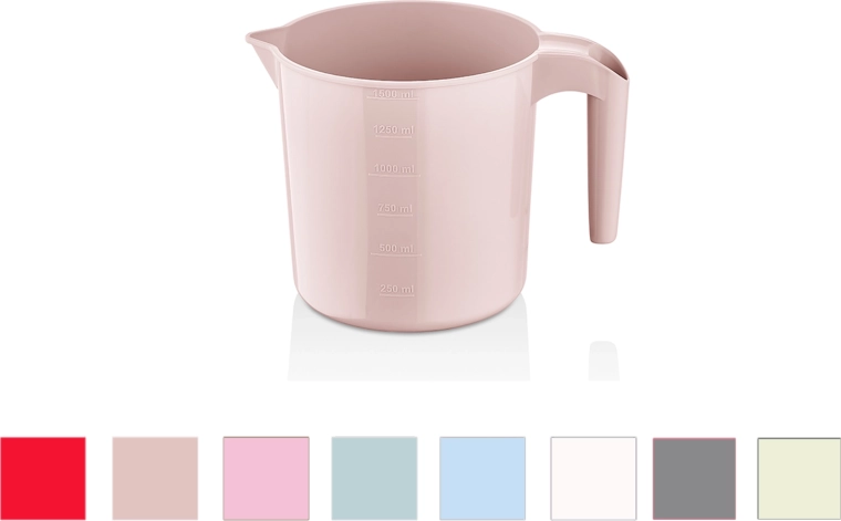 Praktyczny dzbanek miarowy o pojemności 1,5 l to niezbędny pomocnik w każdej kuchni. Dzięki przezroczystemu plastikowi bez BPA łatwo sprawdzisz zawartość, precyzyjnie odmierzysz płyny i składniki sypkie, a dzięki ergonomicznej rączce i profilowanemu dzióbkowi wygodnie nalejesz bez rozlewania. Jest odpowiedni do lodówki, zamrażarki i kuchenki mikrofalowej, a także można go myć w zmywarce.