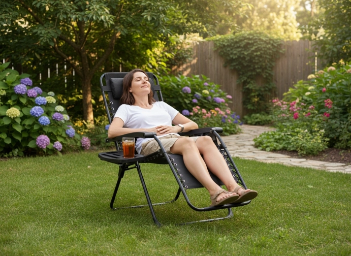 - Składany, regulowany ogrodowy leżak Zero Gravity