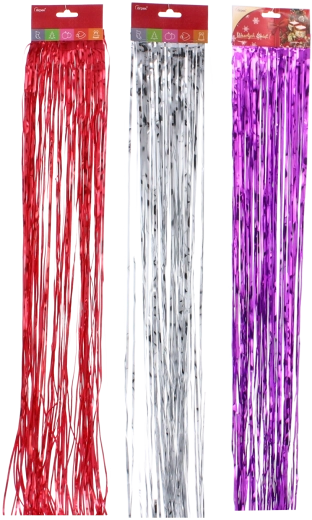 Elegancka lameta w formie anielskich włosów o długości 100 cm doda Twoim świątecznym aranżacjom blasku, połysku i magicznej atmosfery. Cienkie metaliczne paseczki są idealne do dekoracji choinki, okien, drzwi oraz innych elementów wystroju wnętrz. Trwały materiał plastikowy i wybór kolorów srebrnego, złotego i czerwonego ułatwiają dopasowanie do Twojego stylu.