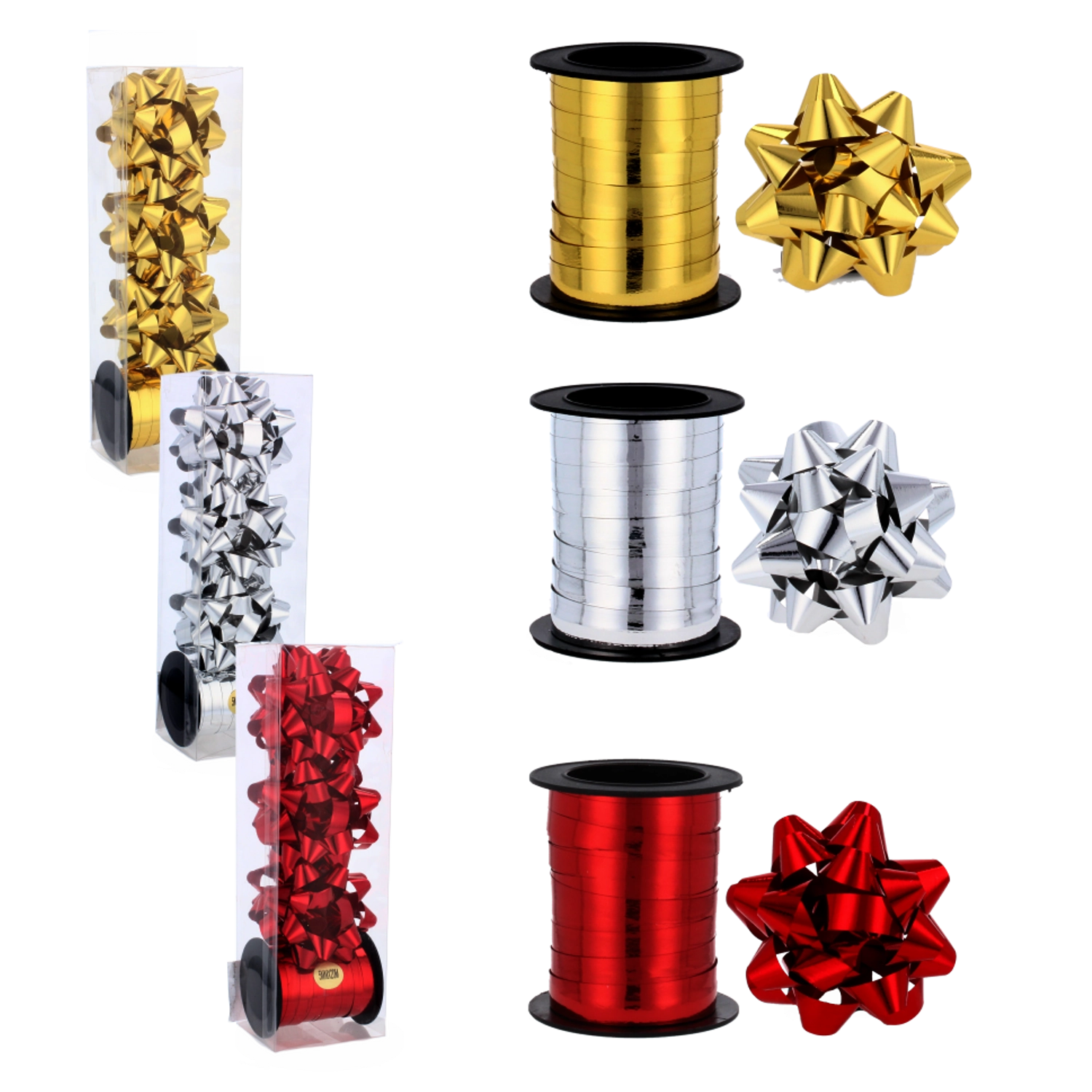 Praktyczny zestaw do pakowania prezentów zawiera wszystko, czego potrzebujesz do szybkiego i eleganckiego pakowania. Znajdziesz w nim 2 wstążki o długości 20 m i szerokości 5 mm oraz 6 gotowych kokardek o średnicy 6 cm. Dzięki temu zestawowi pakowanie będzie łatwe, a Twoje prezenty będą wyglądać profesjonalnie i estetycznie.