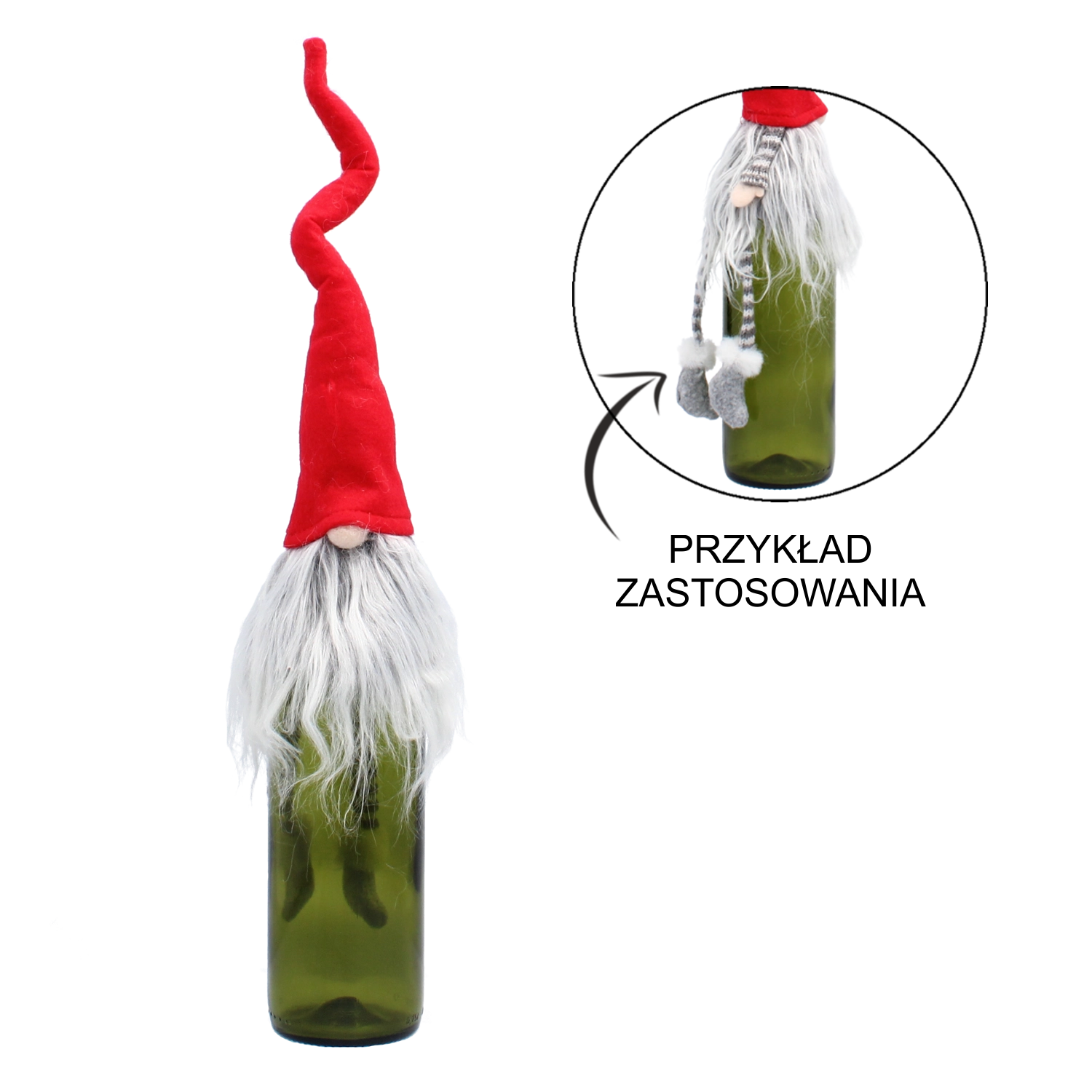 Dodaj serwowaniu wina świątecznego szyku. Dekoracyjny skrzat z szarym brodą i czerwoną czapką natychmiast przyciąga wzrok i zmienia butelkę w stylową bożonarodzeniową dekorację. Miękka tkanina jest przyjemna w dotyku i trwała, co zapewnia długie użytkowanie.
