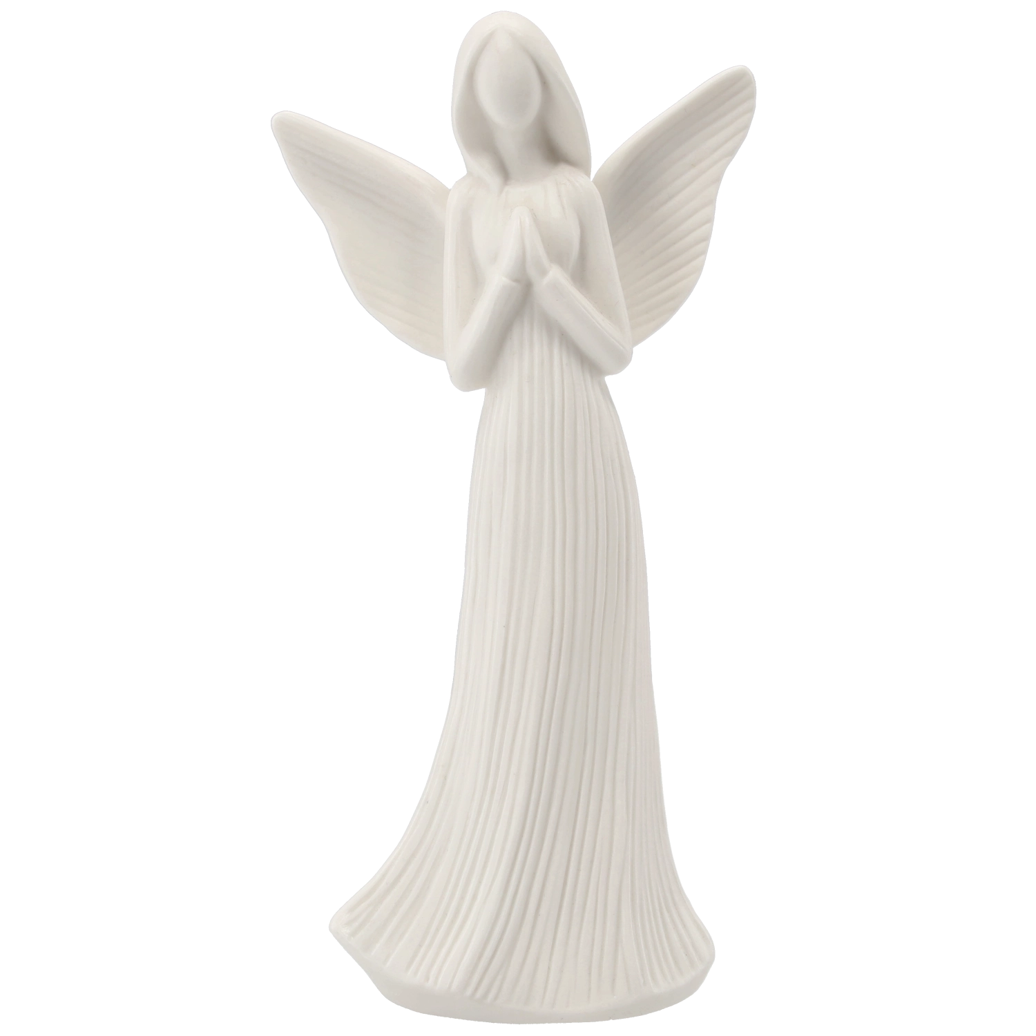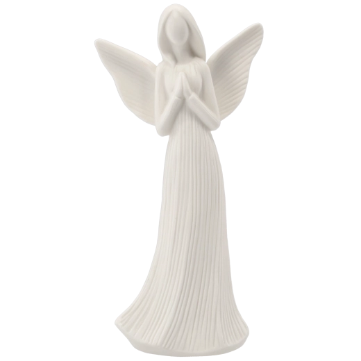 Matowa powierzchnia, elegancko układająca się suknia i subtelne skrzydła tworzą stonowany efekt, a solidna podstawa zapewnia bezpieczne ustawienie na płaskich powierzchniach.