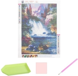 Motyw wodospadu o wymiarach 30 × 40 cm (powierzchnia obrazka 25 × 35 cm) zachwyca połyskiem i po zakończeniu świetnie nadaje się do oprawienia w ramę lub zawieszenia bez ramy. Zestaw jest kompletny – wszystko masz od razu pod ręką.
