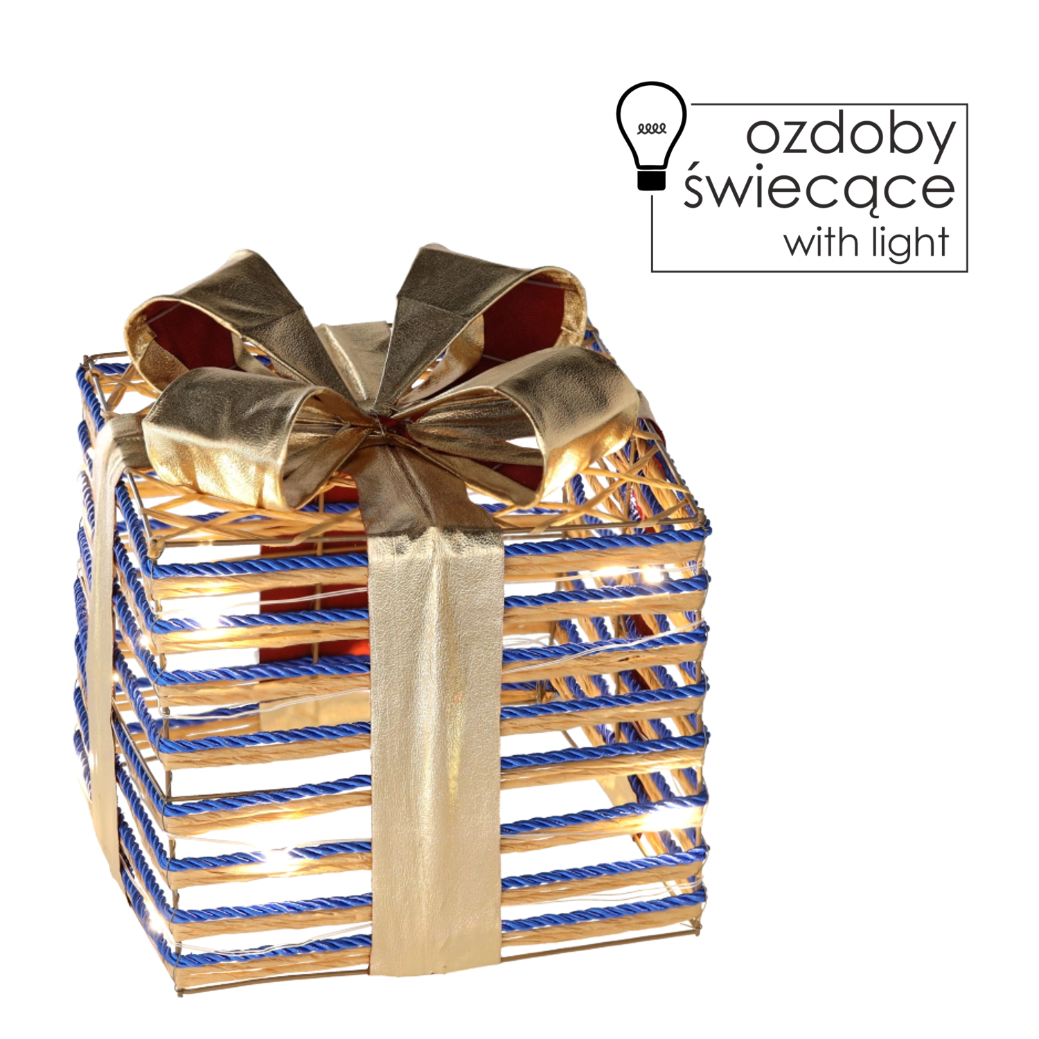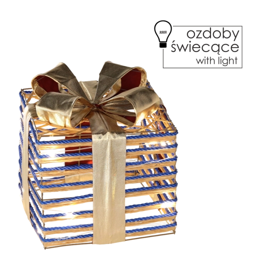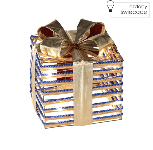 Podaruj sobie magię Świąt dzięki designerskiej dekoracji w kształcie pudełka prezentowego, ozdobionej wyrazistą niebieską kokardą i zintegrowanym oświetleniem LED. Ciepłe światło tworzy przyjemną, świąteczną atmosferę i doskonale uzupełnia aranżację wnętrz oraz przestrzeni zewnętrznych.