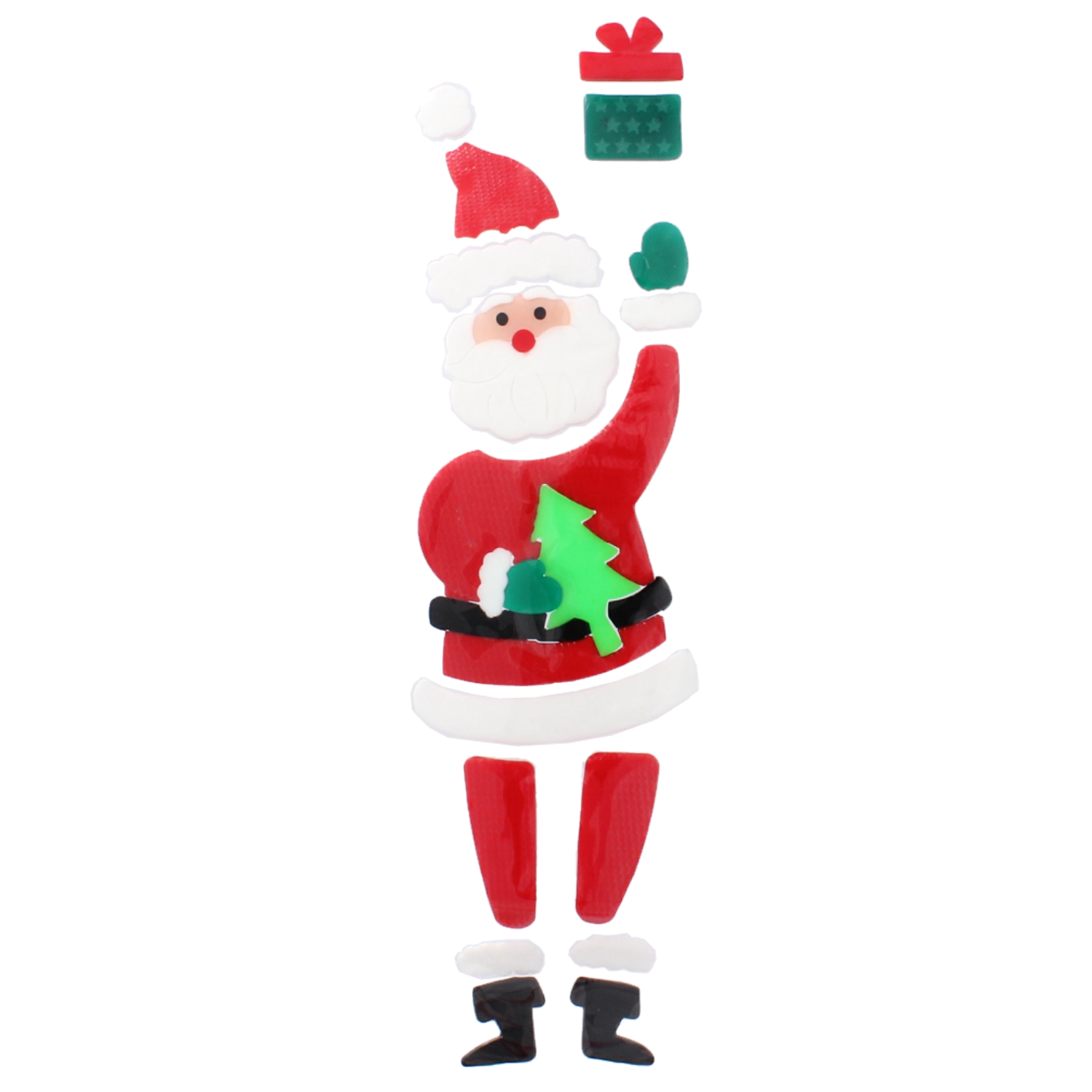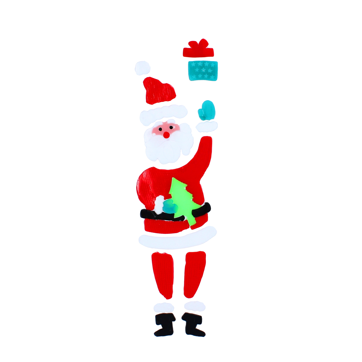 Segmentowany motyw Mikołaja z prezentem łatwo ułożysz na szybie i w każdej chwili przeniesiesz – bez kleju i bez śladów.
