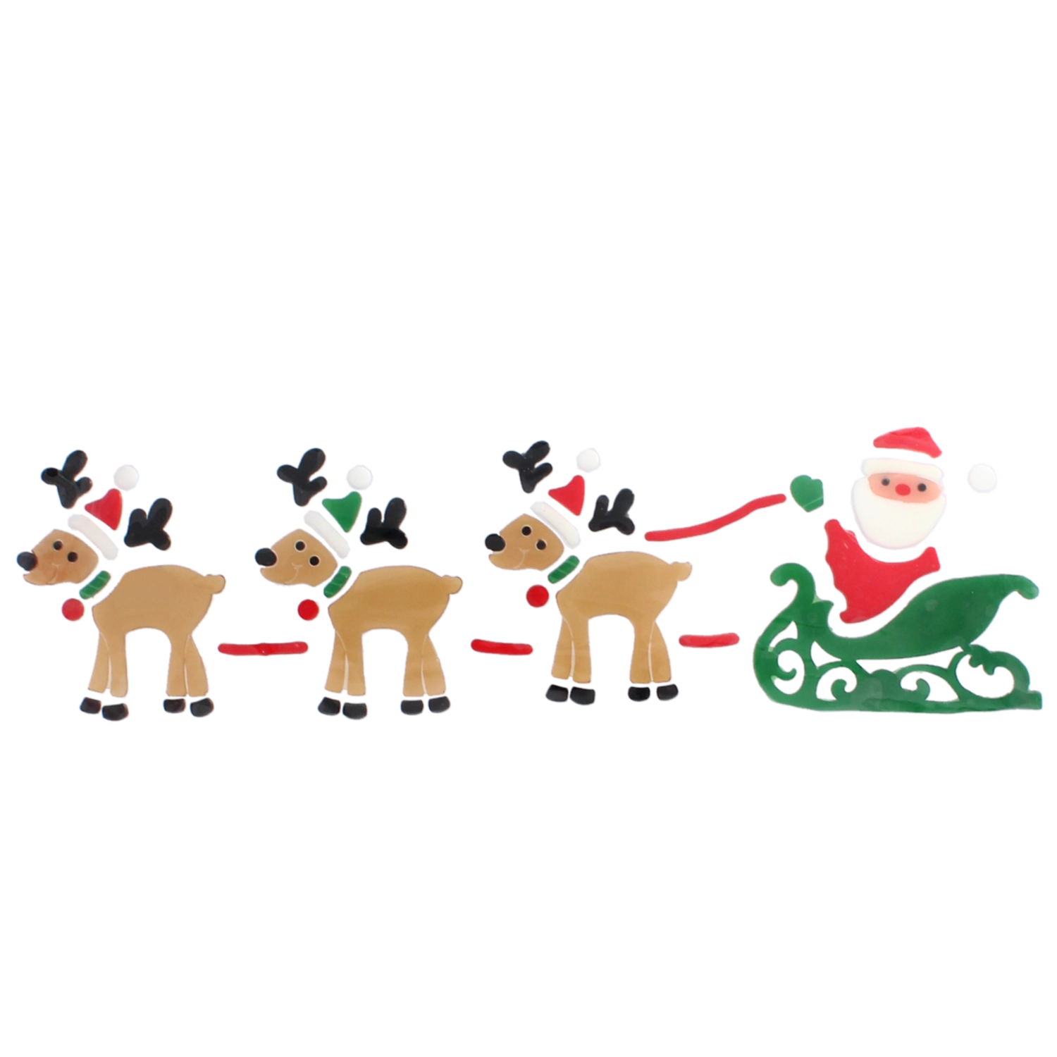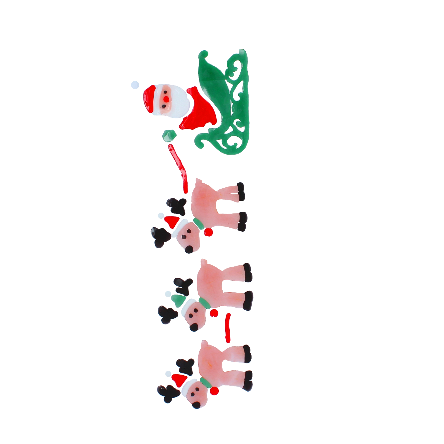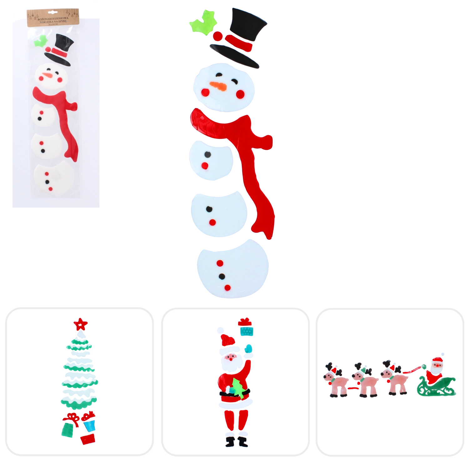 Stwórz w domu prawdziwie świąteczny nastrój dzięki świątecznym żelowym naklejkom na okno o wymiarach 15 × 55 cm. Zestaw oferuje 4 różne motywy (Mikołaj, bałwanek, choinka, sanie z reniferami), które dzięki elektrostatycznej folii bez kleju łatwo się aplikują, nie pozostawiają śladów i są wielokrotnego użytku na oknach, lustrach i innych gładkich powierzchniach.