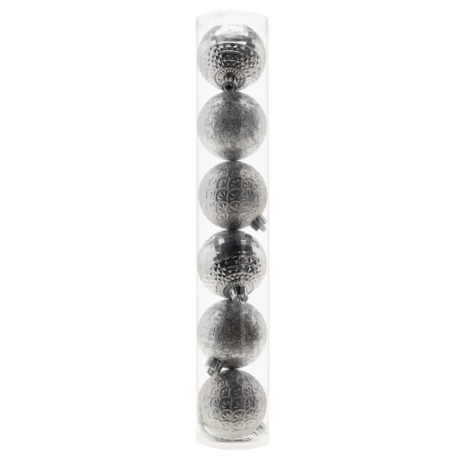 Srebrne bombki z połyskującymi i brokatowymi wykończeniami nadają dekoracjom nowoczesny, migoczący efekt i pięknie odbijają światło świątecznych lampek.
