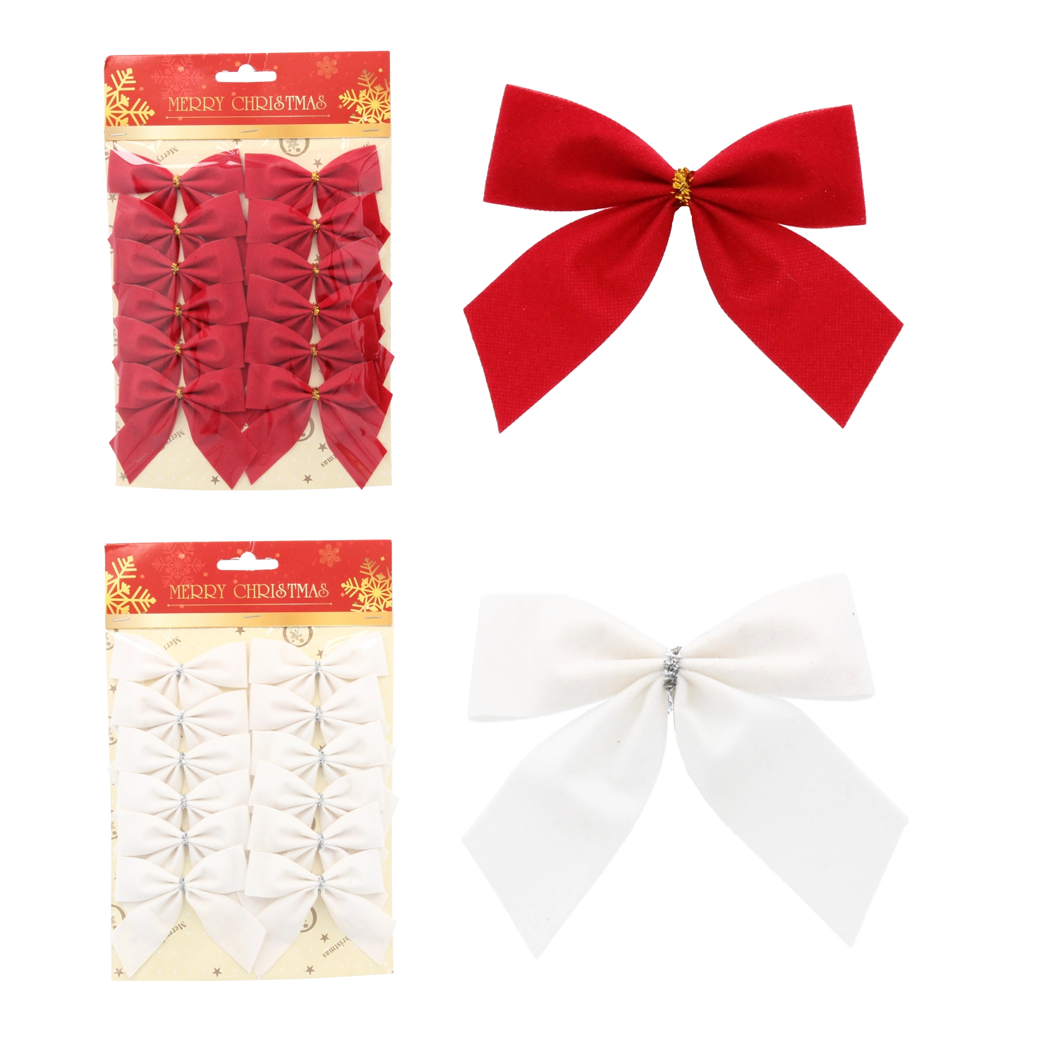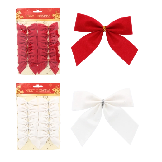 Dodaj stylu swoim świątecznym aranżacjom dzięki temu uniwersalnemu zestawowi kokard. Połączenie klasycznej czerwieni i bieli doskonale współgra z różnymi stylami dekoracji, a welurowa tekstura tworzy elegancki i przytulny wygląd. Dzięki kompaktowym wymiarom 8×6 cm kokardy idealnie nadają się na mniejsze gałązki, pakiety prezentowe i dekoracje adwentowe.