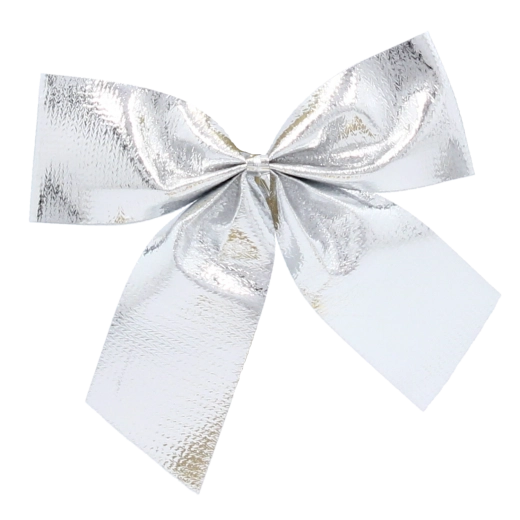 Srebrne kokardy o wyrazistym połysku pięknie odbijają światło i podkreślą każdy pakunek czy gałązkę.