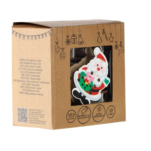 Łańcuch jest zasilany 2× bateriami AA, więc nie ogranicza Cię bliskość gniazdka. To świetne rozwiązanie do okien, pokoi dziecięcych i wszędzie tam, gdzie chcesz szybko i bez kłopotu stworzyć świąteczną atmosferę.