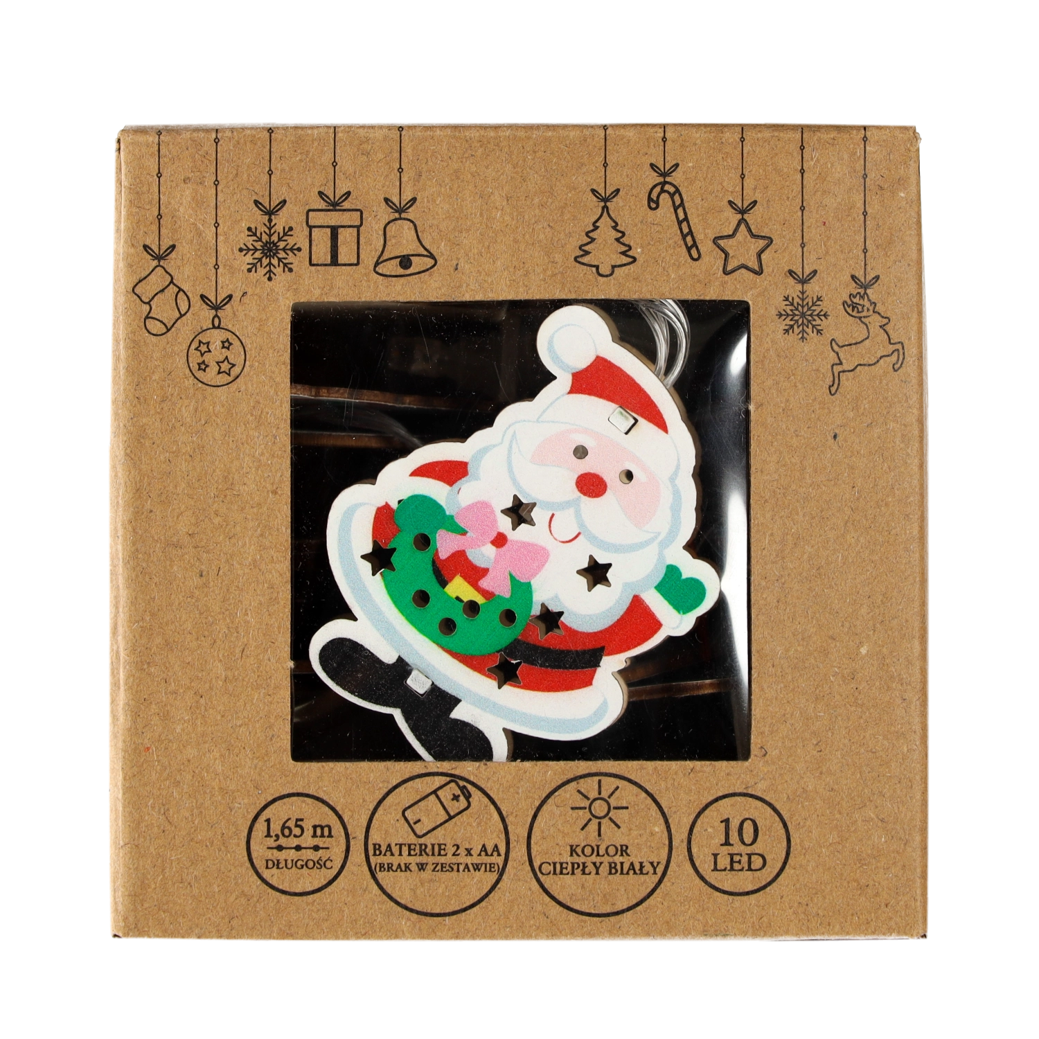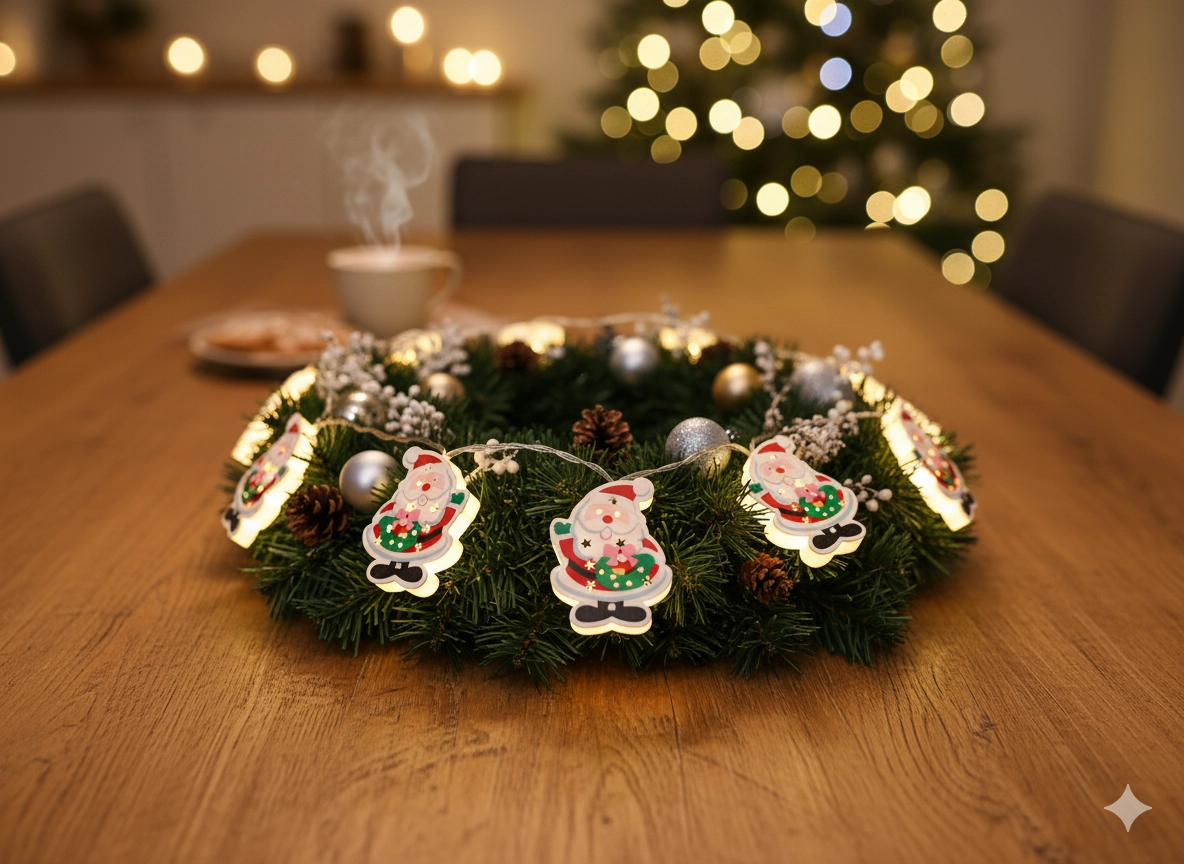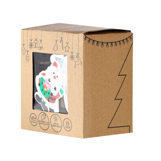 Wnieś do domu magię Świąt dzięki dekoracyjnemu łańcuchowi LED z sylwetkami Mikołaja. Ciepłe białe światło tworzy przytulną atmosferę, zasilanie bateryjne daje swobodę ustawienia bez kabli, a 10 diod LED subtelnie rozświetli wieniec, choinkę i parapet.