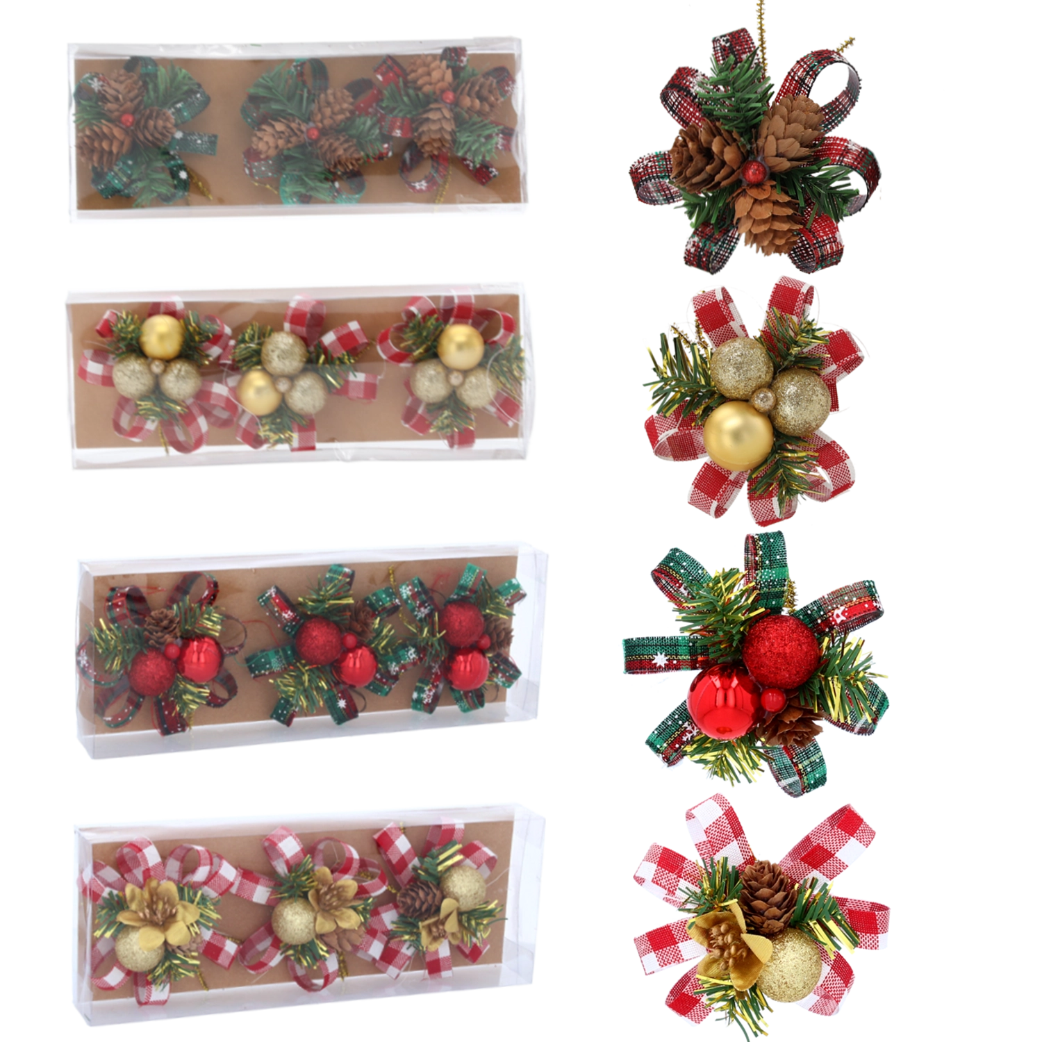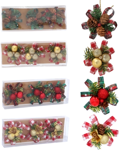 Każda ozdoba ma praktyczne druciane mocowanie, które umożliwia szybkie i bezpieczne umieszczenie na gałązkach, girlandach lub prezentach.