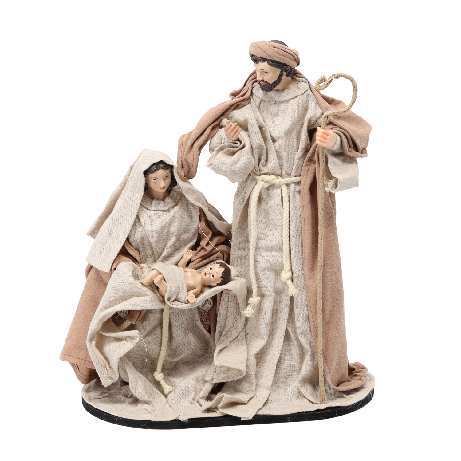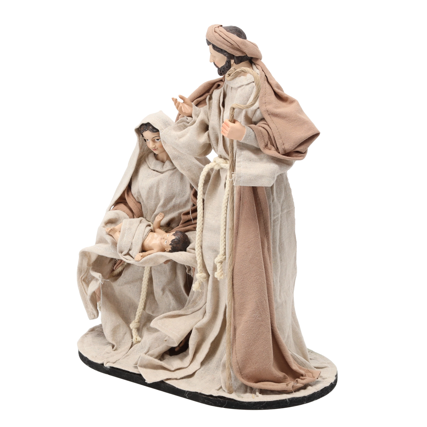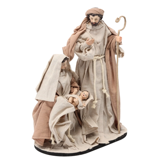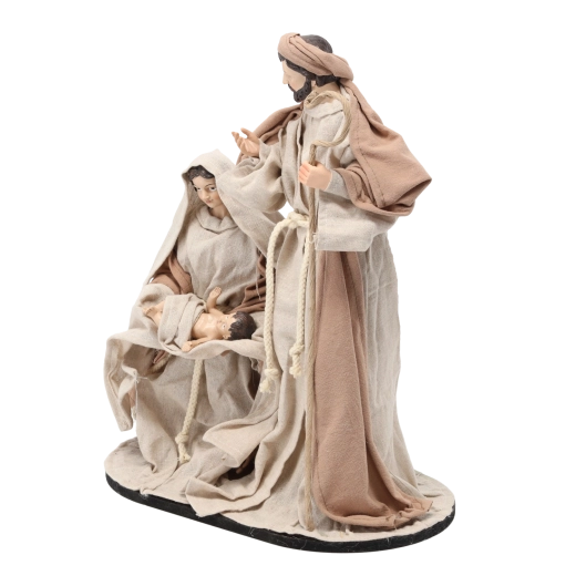 Ta dekoracyjna figurka przedstawia Józefa, Marię i Dzieciątko Jezus w tradycyjnym ujęciu na solidnej podstawie. Dzięki precyzyjnym detalom strojów i wyrazu twarzy wygląda realistycznie i wnosi do wnętrza spokój oraz ciepło rodzinnych Świąt.