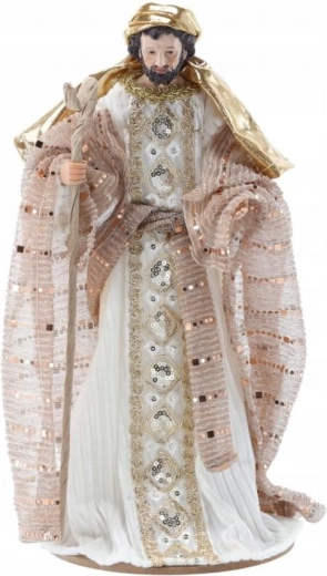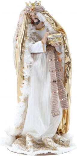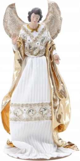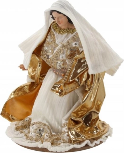 Białe szaty i złote, połyskujące detale prezentują się odświętnie i zarazem ponadczasowo – idealne do eleganckiej dekoracji świątecznej.