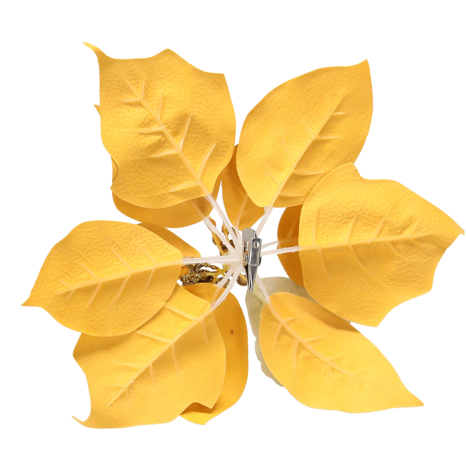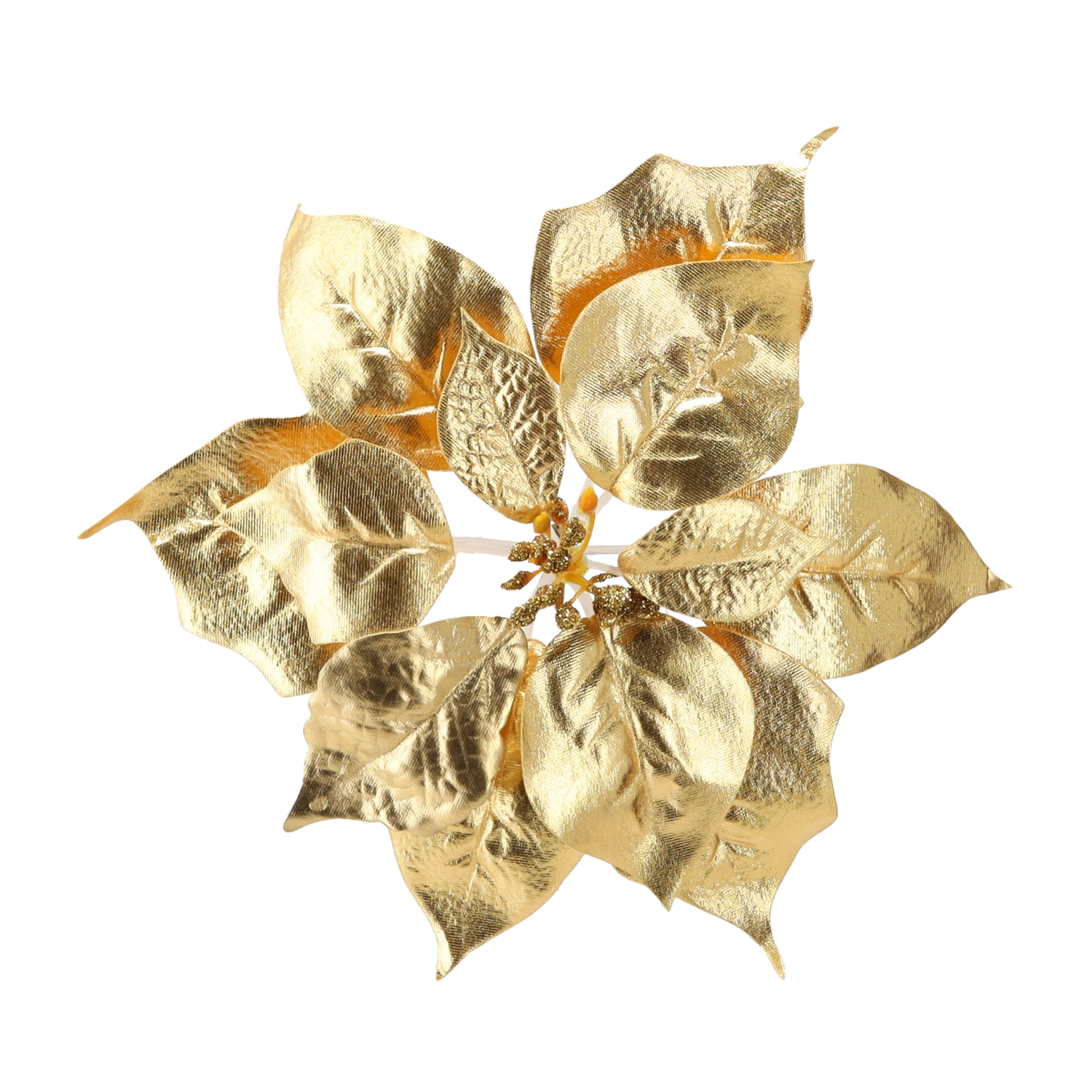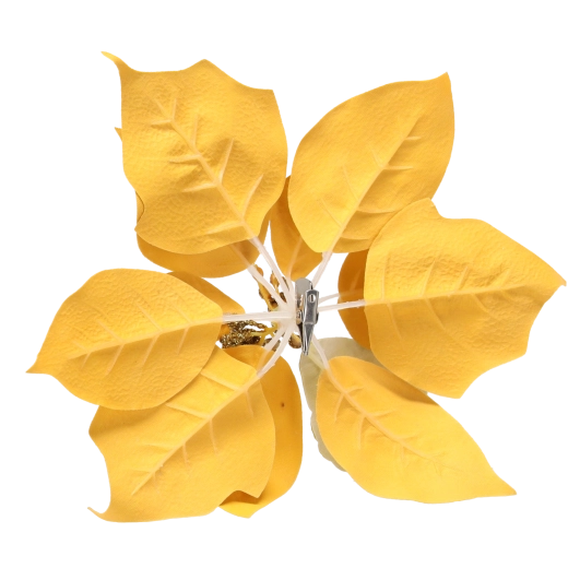 Stwórz magiczną atmosferę Świąt z dekoracyjnym kwiatem poinsecji w metalicznym złocie. Dzięki uniwersalnemu klipsowi umieścisz go dokładnie tam, gdzie najlepiej się zaprezentuje – na choince, w wieńcu, na girlandzie lub jako element świątecznego stołu. Lekka konstrukcja i solidne mocowanie umożliwiają szybkie i bezpieczne aranżowanie.