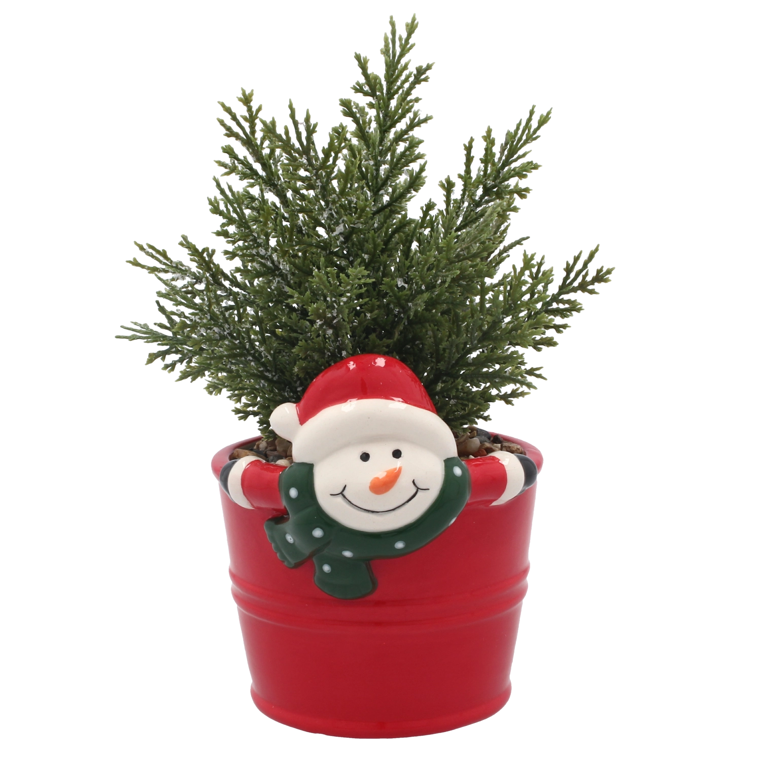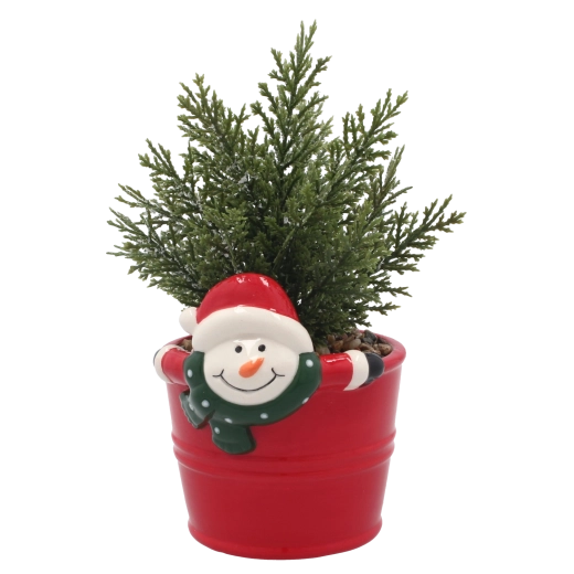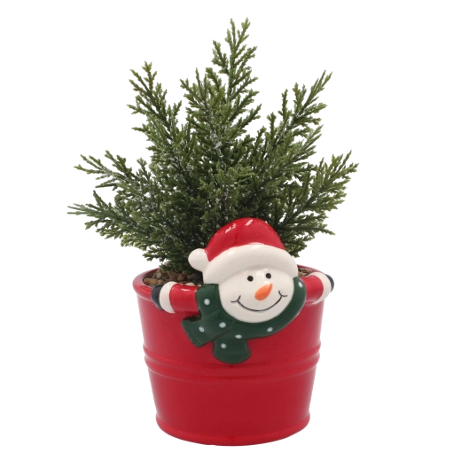 Stylowa sztuczna roślina w wysokiej jakości ceramicznej doniczce wnosi do wnętrza świeżość i naturalny klimat przez cały rok. Dzięki precyzyjnie odwzorowanemu igliwiu i dekoracyjnej doniczce z radosnym zimowym motywem wygląda autentycznie i natychmiast tworzy świąteczny nastrój na stole, półce czy biurku.