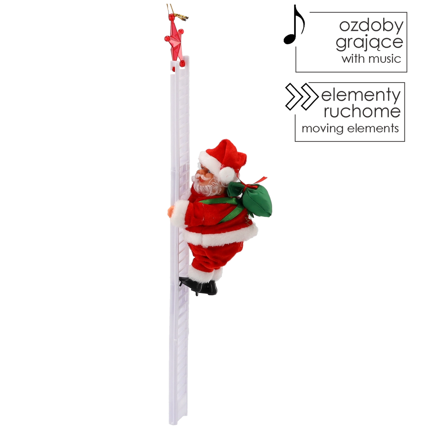 - Ruchoma świąteczna dekoracja – Mikołaj na drabinie z melodią