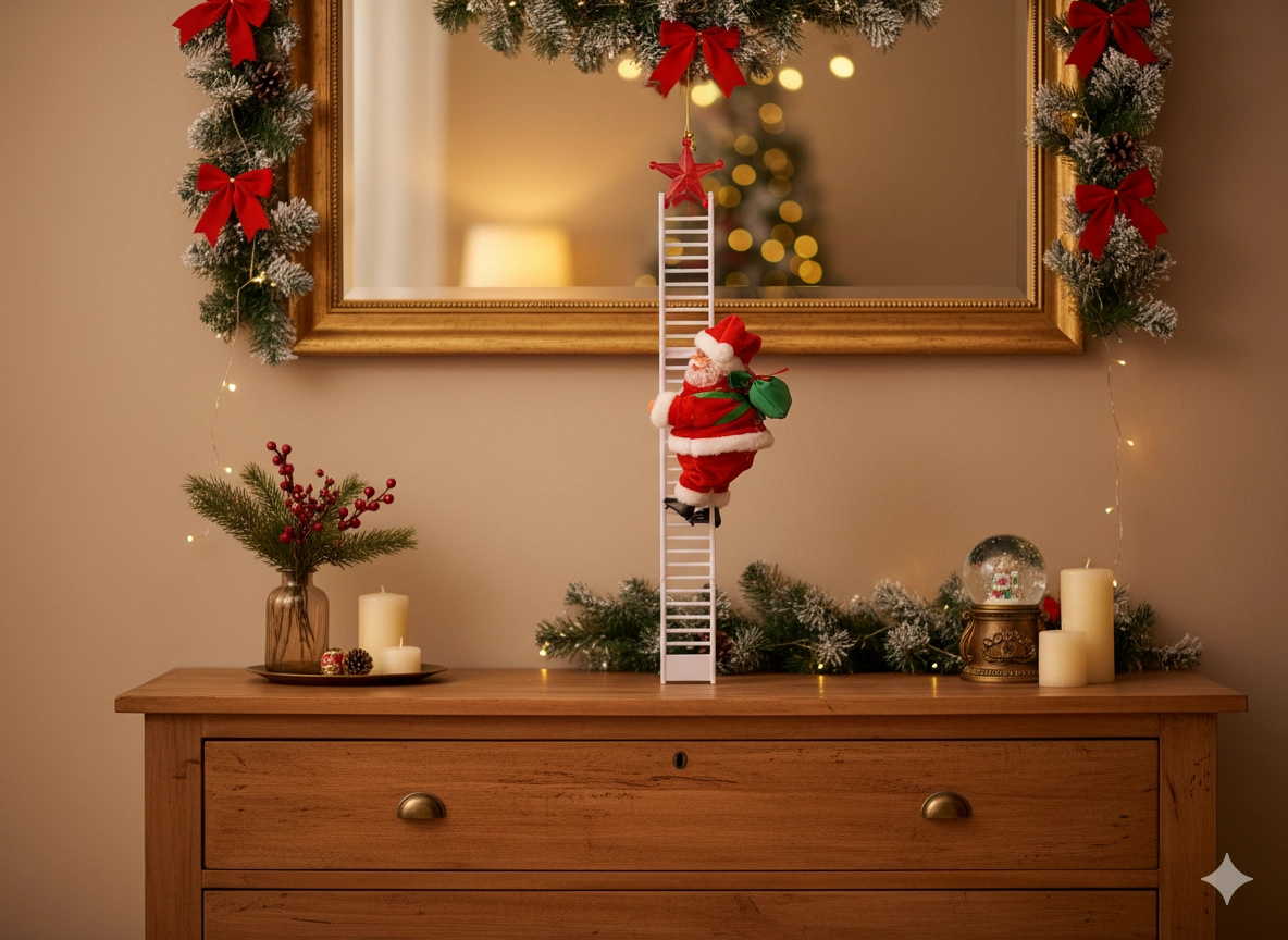 Ta urokliwa świąteczna dekoracja z Mikołajem na drabinie natychmiast rozświetli każde wnętrze. Realistyczny ruch figurki oraz wbudowana melodia w kilka chwil wprowadzą ciepły, świąteczny nastrój. Dzięki zasilaniu bateryjnemu łatwo ustawisz ją w dowolnym miejscu – w salonie, pokoju dziecięcym, biurze, a nawet w witrynie.