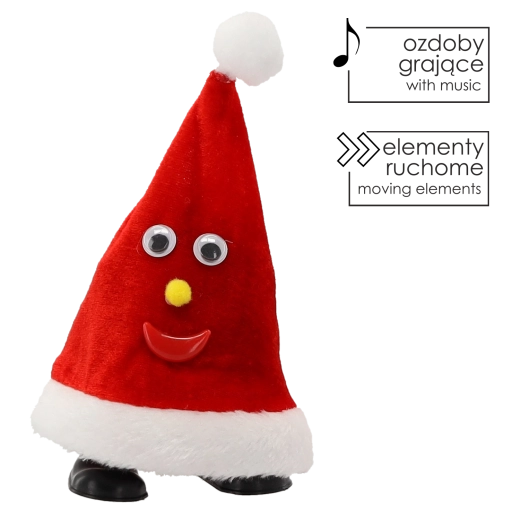 Wprowadź do Świąt jeszcze więcej radości z interaktywną czapką Mikołaja, która po włączeniu uroczo się porusza i odtwarza wesołe melodie. Jej wyrazisty design z ruchomymi oczkami, żółtym nosem i uśmiechem sprawia, że to nieodzowny element świątecznej dekoracji w salonie, pokoju dziecięcym czy biurze.