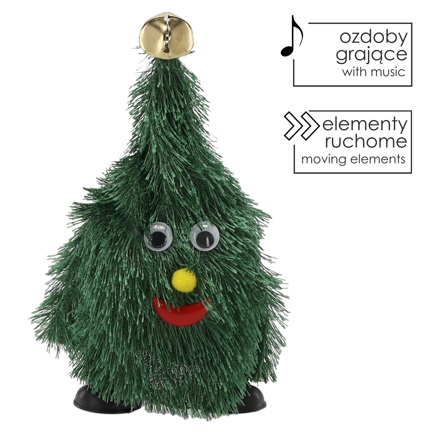 Ta oryginalna choinka świąteczna to idealna dekoracja do domu, biura i pokoju dziecięcego. Po uruchomieniu zaczyna tańczyć w rytm muzyki i dopełnia nastrój świątecznymi melodiami. Wysoka jakość wykonania z wytrzymałego plastiku zapewnia bezpieczne użytkowanie i długą żywotność.