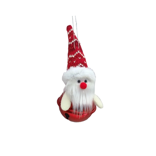 Ta świąteczna ozdoba łączy tradycyjny urok świąt z trwałym wykonaniem. Korpus w kształcie błyszczącego czerwonego dzwoneczka dopełniają tekstylne detale – kapelusz lub czapka, szalik, a u Mikołaja także puszysta broda – które dodają dekoracji osobowości. Każdy egzemplarz jest subtelnie wykończony ręcznym malowaniem dla autentycznego wyglądu.
