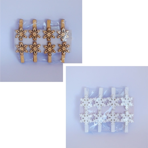 Świąteczne klipsowe ozdoby ze śnieżynkami, 3 × 3 cm, zestaw 8 szt.