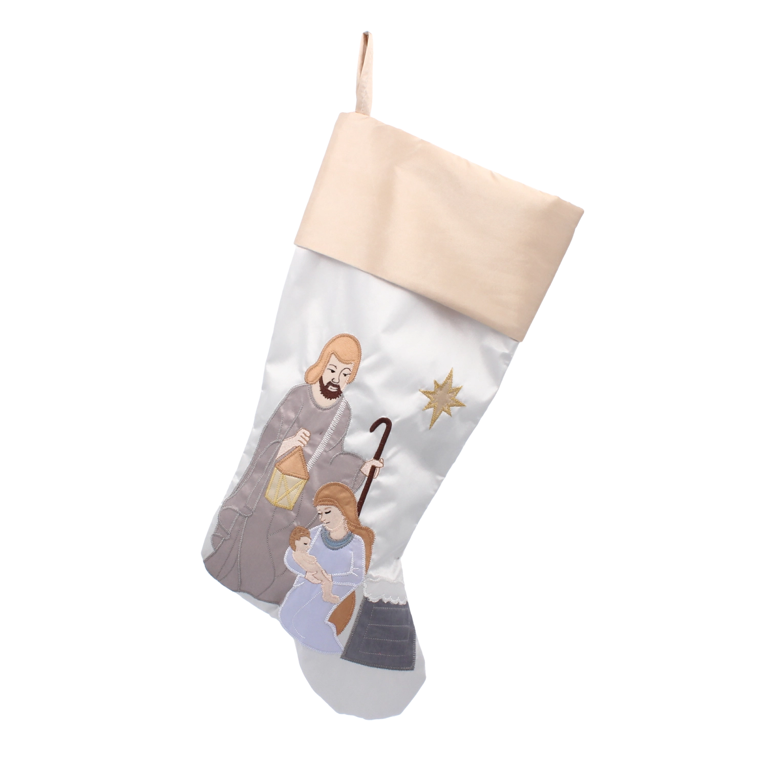 Ta świąteczna skarpeta z motywem Świętej Rodziny to piękne przypomnienie prawdziwego znaczenia Bożego Narodzenia. Dzięki starannemu wykonaniu i miękkiemu materiałowi tekstylnemu stanie się ulubioną częścią Twoich świątecznych dekoracji – niezależnie od tego, czy zawiesisz ją nad kominkiem, na ścianie, poręczy czy na większej choince.