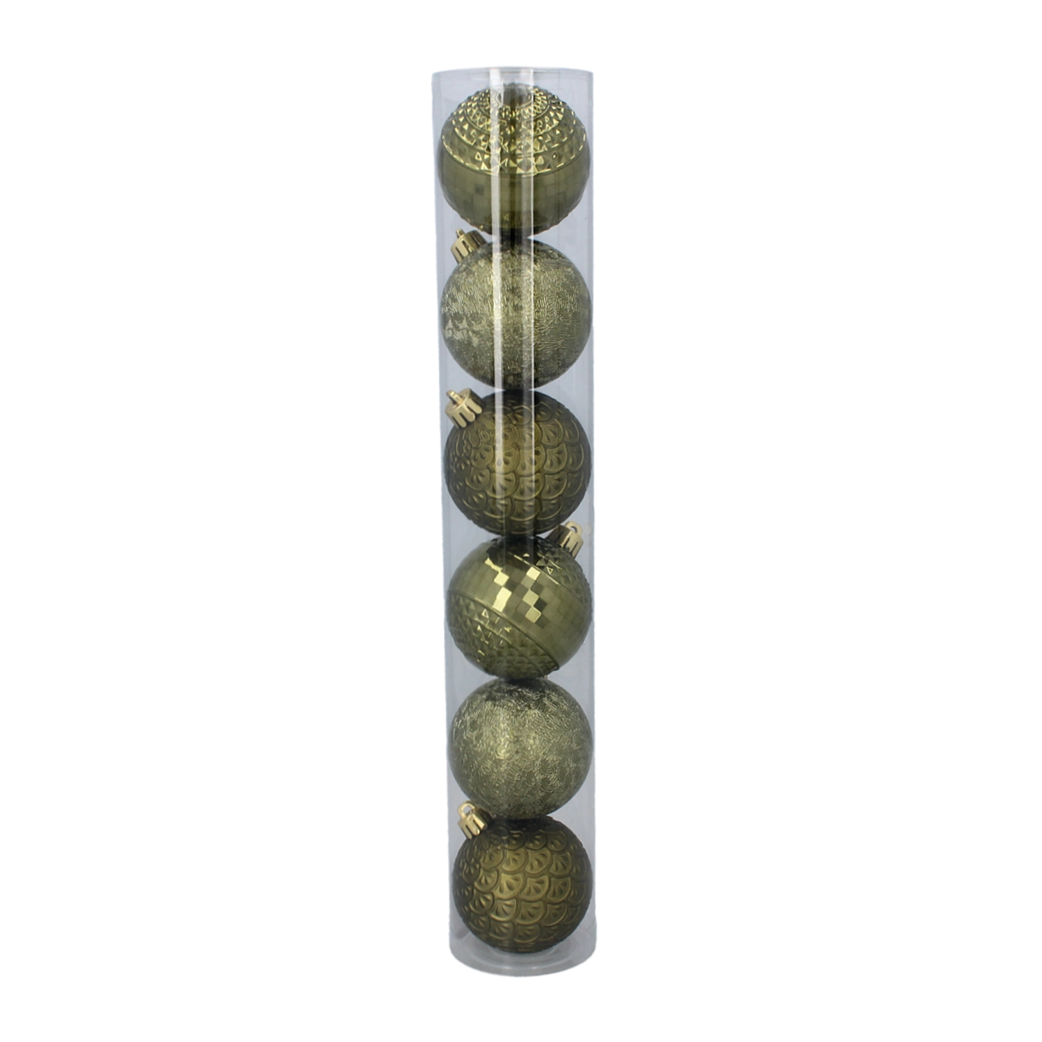 Ozdoby wykonano z wytrzymałego plastiku, dzięki czemu lepiej znoszą użytkowanie i wielokrotne wykorzystanie podczas świątecznych sezonów. Przezroczysta tuba ułatwia przechowywanie, chroni bombki przed zarysowaniami i utrzymuje zestaw w ładzie.