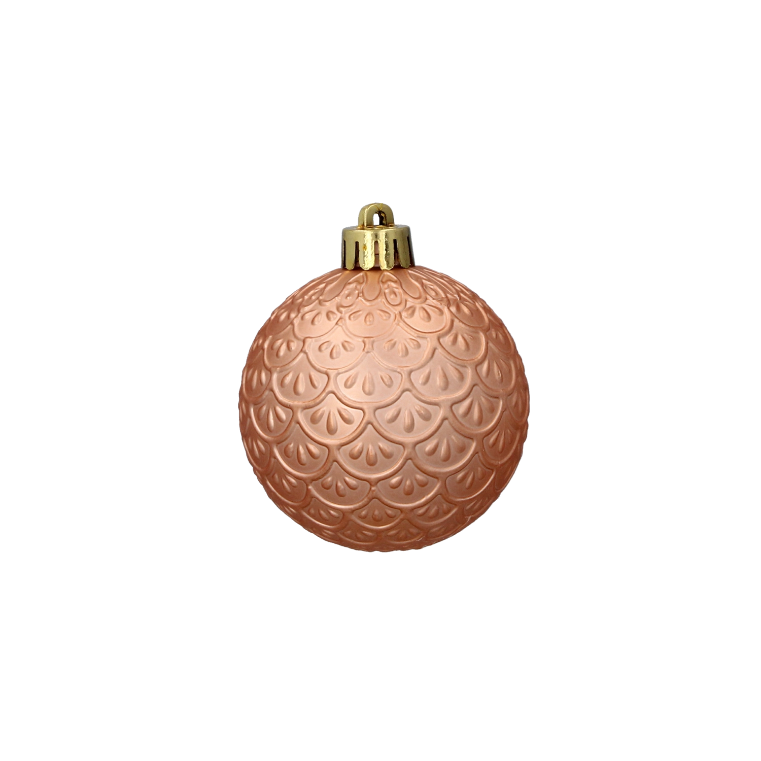 Każda bombka ma inny wykończenie – połysk, mat i relief – które razem tworzą żywą i elegancką kompozycję na choince.