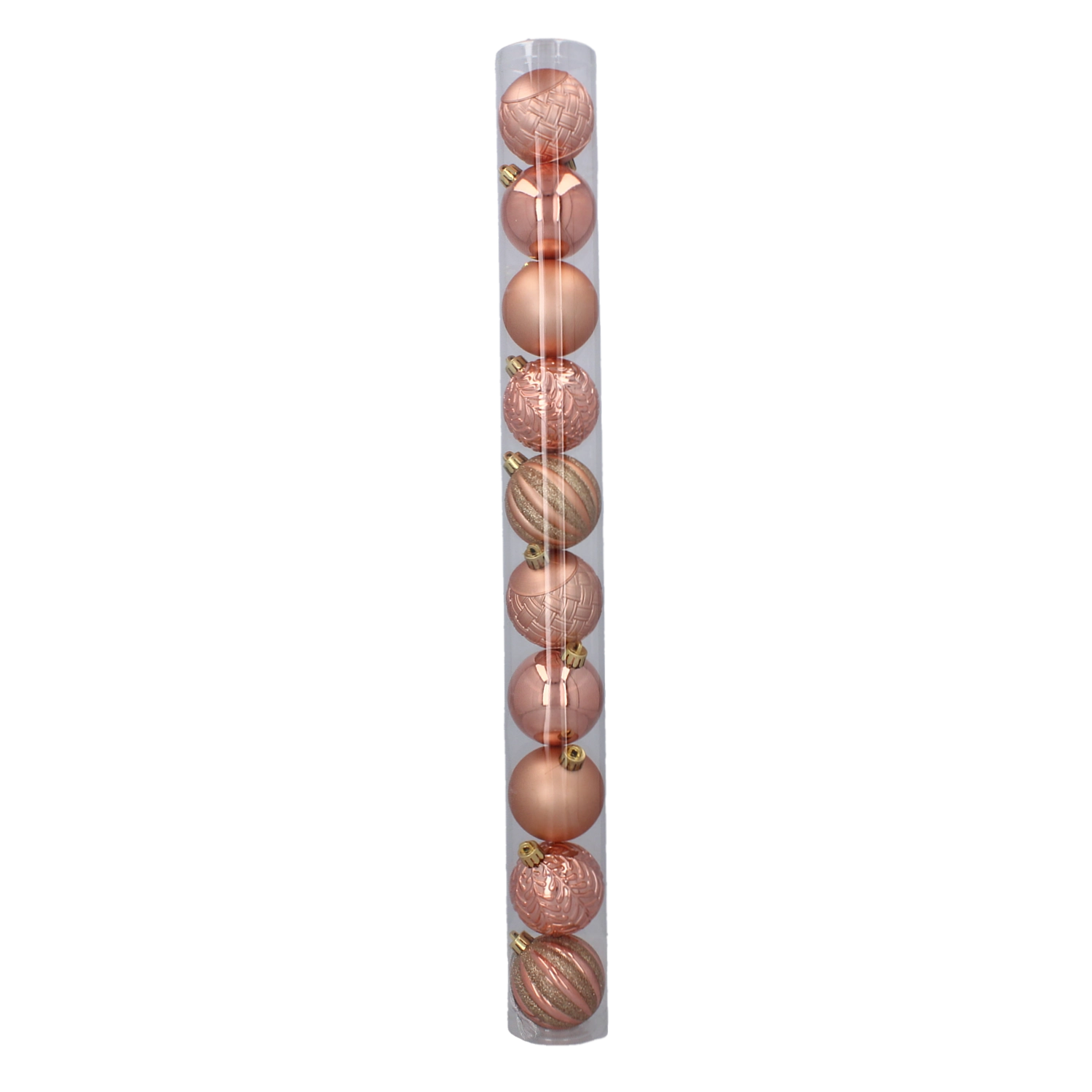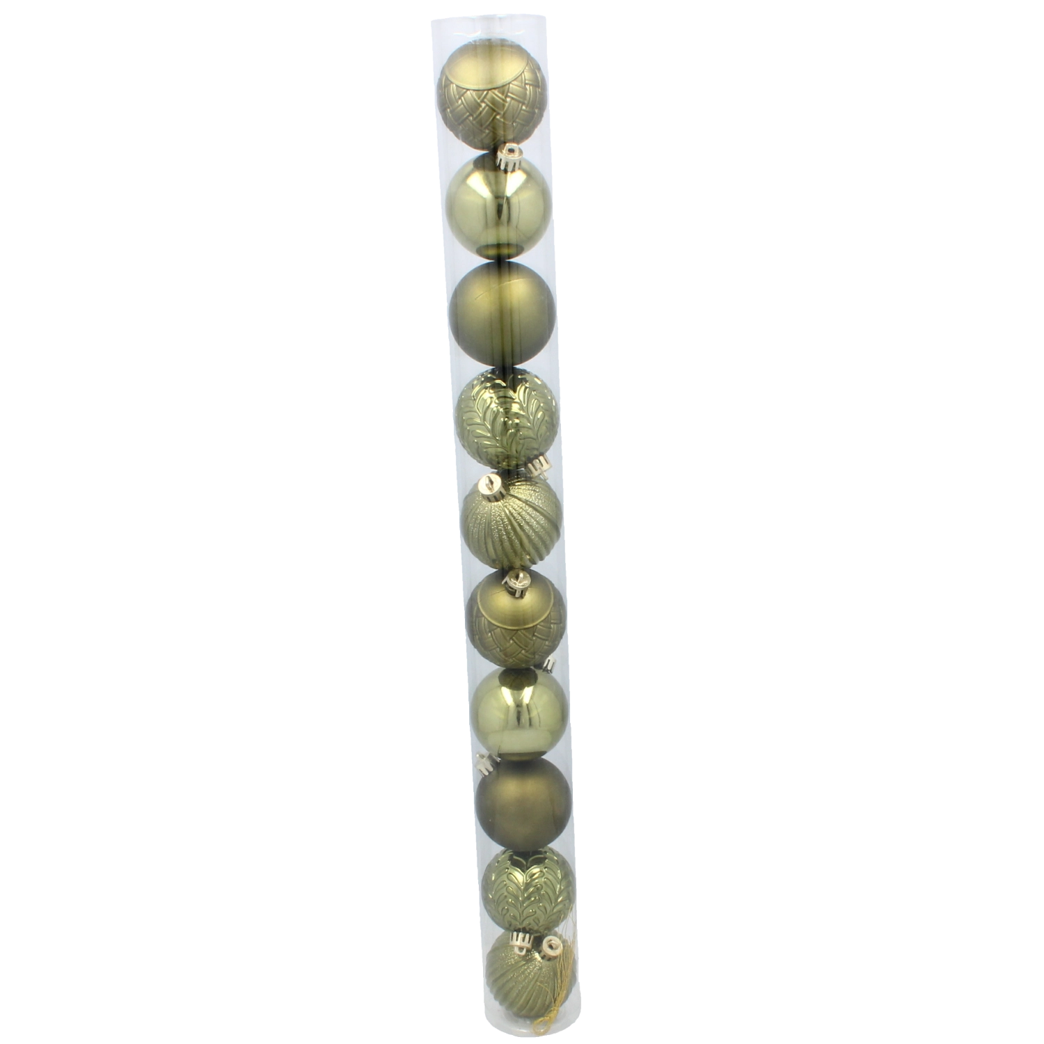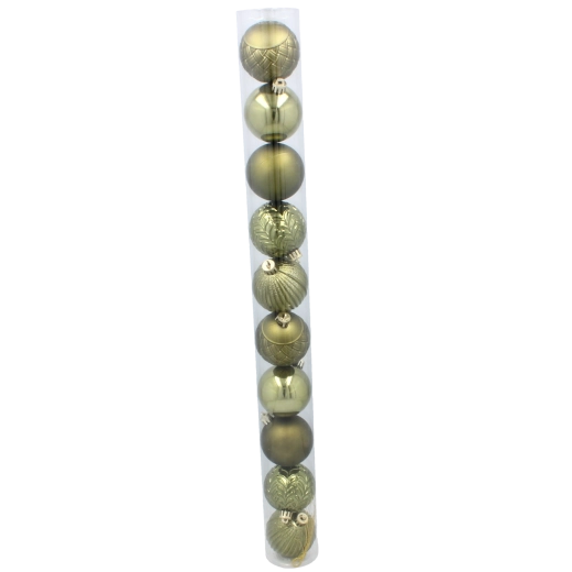 Stylowy zestaw 10 bombek świątecznych o średnicy 6 cm w połączeniu kolorów oliwkowego, miedzianego i grafitowego nada choince nowoczesny i wyrafinowany wygląd. Trwały plastik zapewnia bezpieczeństwo i długą żywotność, dzięki czemu są idealne również do domów z dziećmi lub zwierzętami. Każda bombka ma praktyczny zawieszek ułatwiający wieszanie.