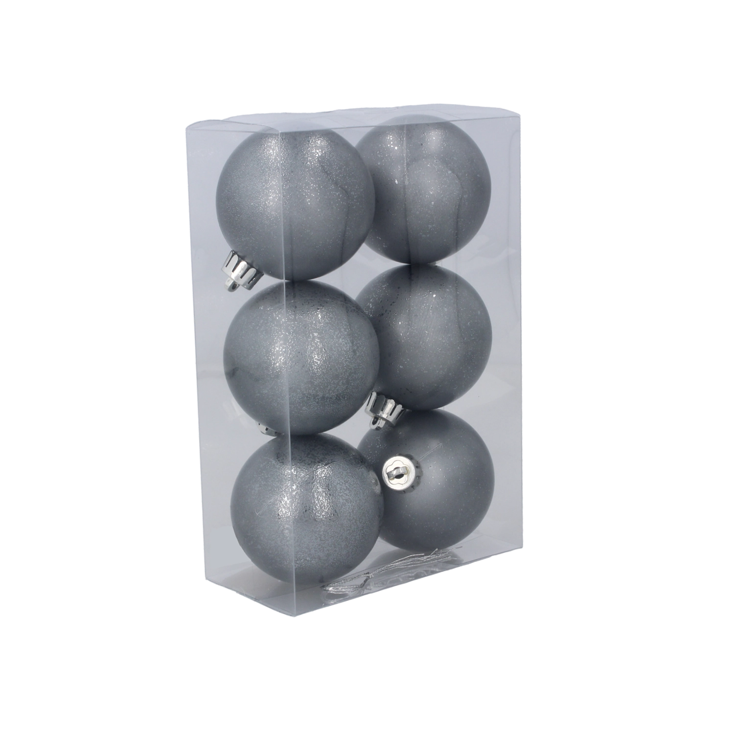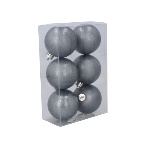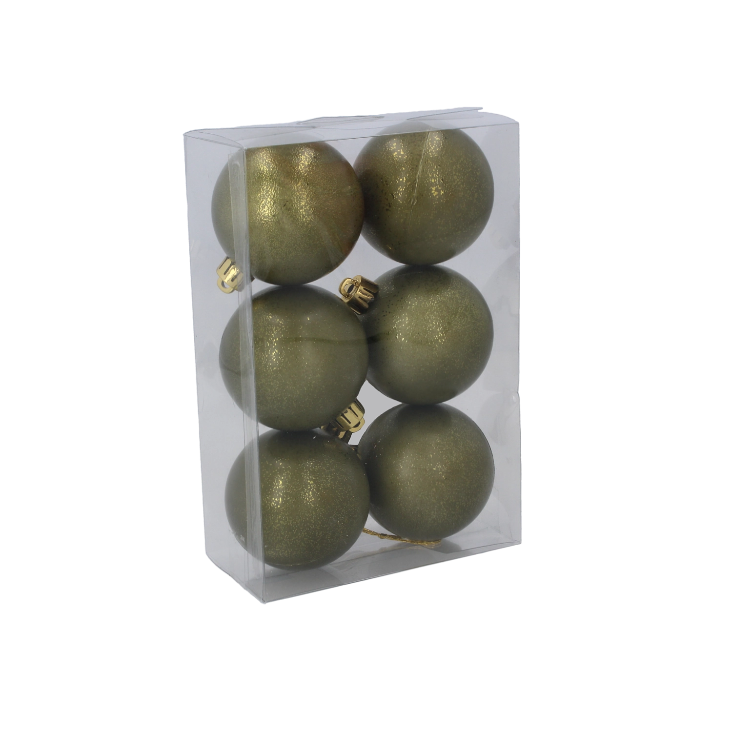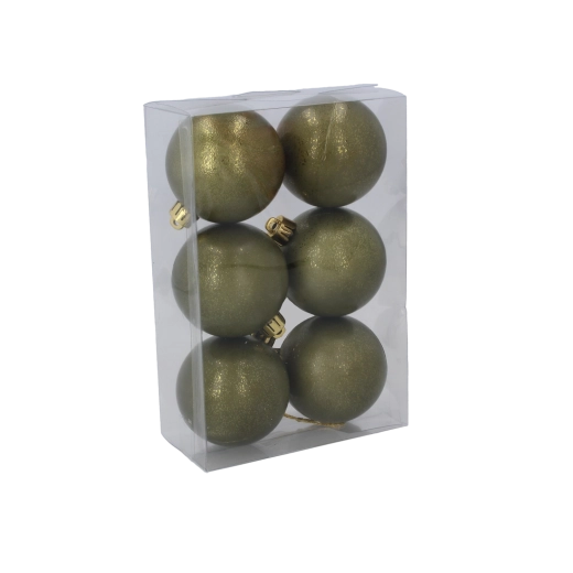 Zestaw plastikowych bombek choinkowych 6 cm – oliwkowe, miedziane i grafitowe (6 szt.)