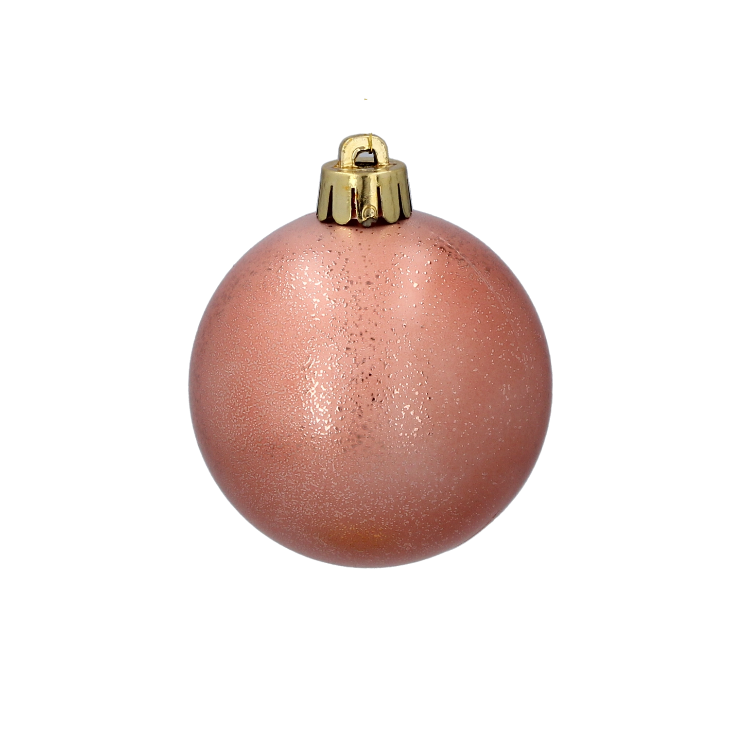 Dodaj swojej choince i świątecznym dekoracjom nowoczesnego charakteru dzięki zestawowi sześciu bombek o średnicy 6 cm w kolorach oliwkowym, miedzianym i grafitowym. Lekki plastikowy materiał jest odporny na stłuczenie, dzięki czemu ozdoby są idealne do domów z dziećmi i zwierzętami. Ponadczasowe barwy łatwo skomponujesz zarówno z tradycyjnymi, jak i nowoczesnymi dekoracjami.
