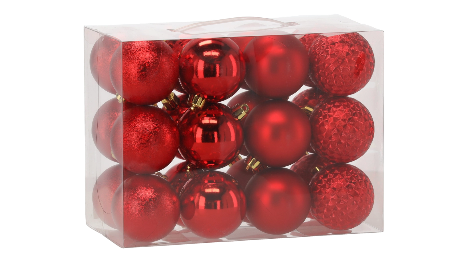 Stwórz idealną świąteczną atmosferę z uniwersalnym zestawem bombek, które łączą tradycyjne kolory z różnymi wykończeniami i wzorami – połysk, mat, brokat i fakturę. Każda ozdoba ma metalową zawieszkę z oczkiem i delikatny sznureczek do szybkiego powieszenia.