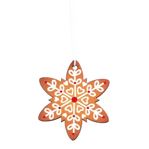 Wprowadź do swojego domu tradycyjną, świąteczną atmosferę z zestawem 18 drewnianych ozdób w kształcie śnieżynek. Każdy element jest starannie wycięty z wysokiej jakości drewna, ma naturalny brązowy, rustykalny wygląd i dzięki białym oraz czerwonym dekorom pięknie prezentuje się na choince, girlandzie i wieńcu. Ozdoby są trwałe i nietłukące, łatwe do zawieszenia za pomocą wstążki i stanowią idealny wybór dla ekologicznych i zrównoważonych dekoracji.