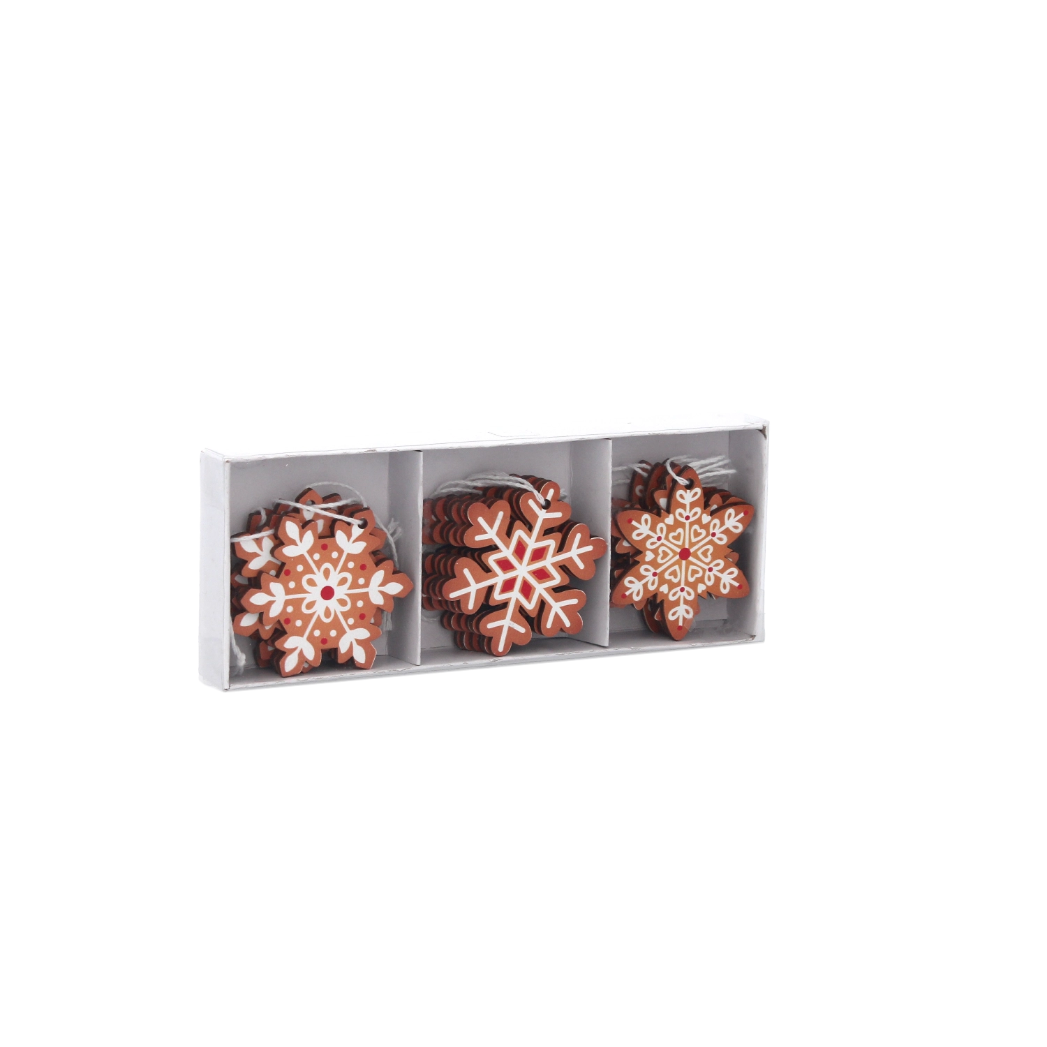 Zestaw oferuje miks 3 unikalnych śnieżynek w harmonijnych brązowych tonach z białymi i czerwonymi detalami. Dzięki temu łatwo stworzysz zrównoważoną i estetyczną, świąteczną kompozycję.