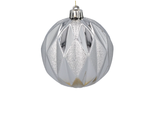 Kombinacja matowych, błyszczących, teksturowanych i fasetowanych powierzchni nadaje choince głębi i blasku.