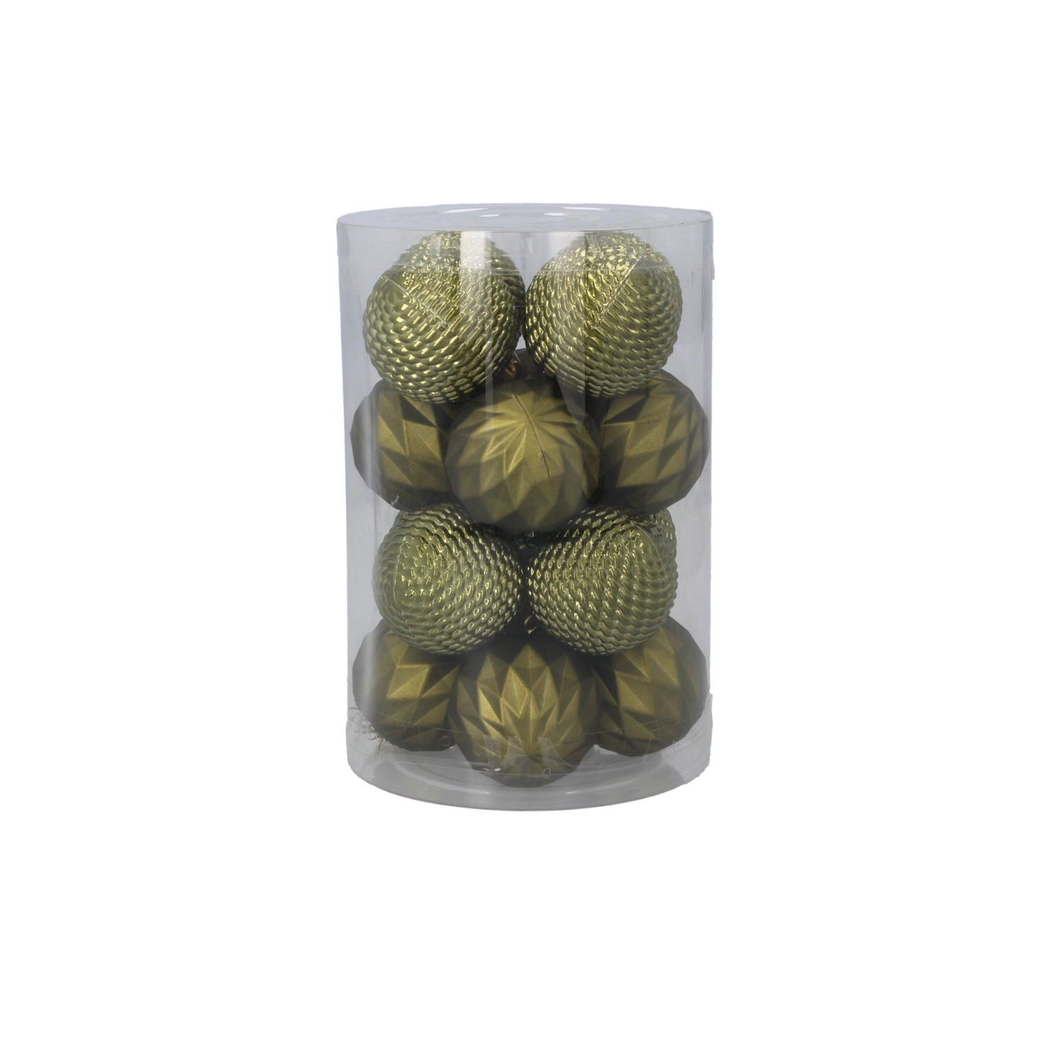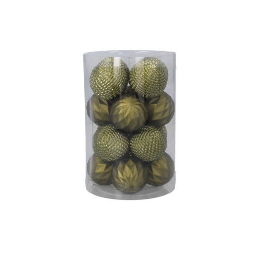 Dodaj swoim świątecznym dekoracjom wyrafinowany sznyt. Zestaw łączy trzy modne odcienie – oliwkowy, miedziany i grafitowy – oraz różne struktury powierzchni, które pięknie odbijają światło i tworzą harmonijny, nowoczesny efekt. Dzięki wysokiej jakości plastikowi bombki są lekkie, wytrzymałe i świetnie sprawdzą się również w domach z dziećmi lub zwierzętami.