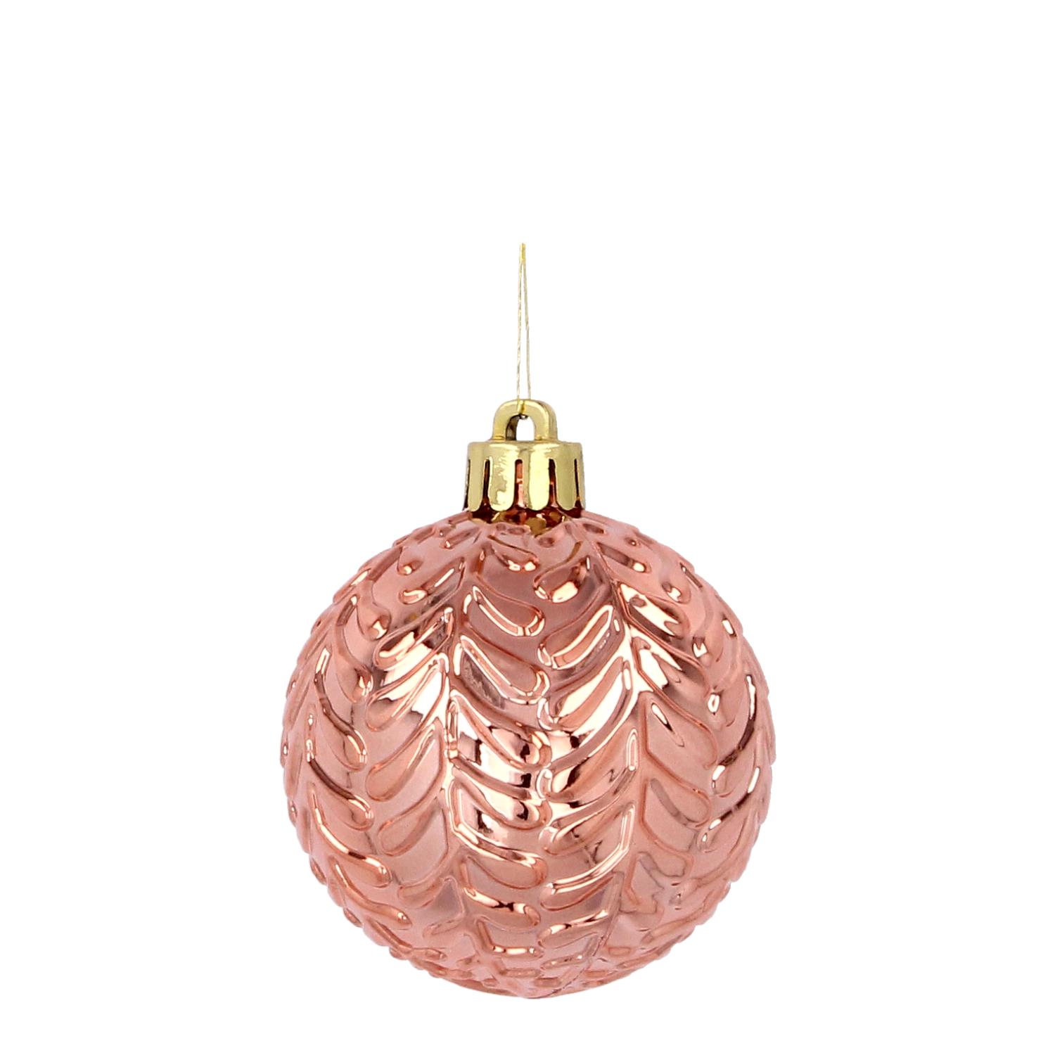 Kombinacja gładkich, fasetowanych i reliefowych wzorów dodaje choince głębi, blasku i wizualnej różnorodności bez zbędnego przepychu.