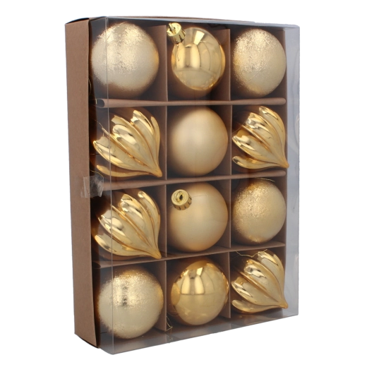 Ten uniwersalny zestaw ozdobi małe i średnie choinki, wieńce oraz girlandy. Dzięki lekkiej konstrukcji gałązki się nie uginają, a metalowe oczka z haczykami umożliwiają szybkie i pewne zawieszenie. Klasyczna paleta czerwieni, złota i srebra z łatwością komponuje się z większością łańcuchów świetlnych i dekoracji.