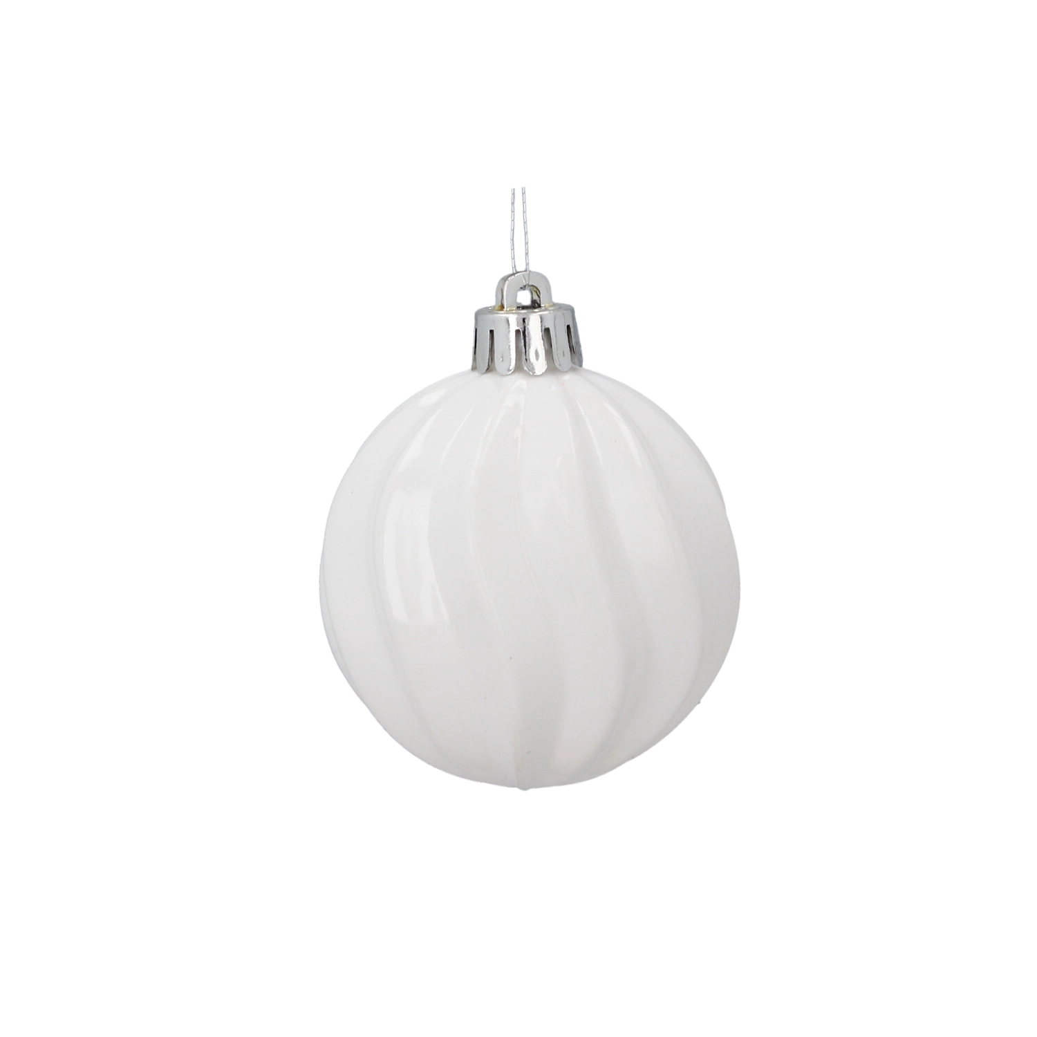 Te białe bombki świąteczne wyróżniają się czystym wyglądem, który podkreśli zarówno nowoczesne, jak i tradycyjne aranżacje. Lekki i wysokiej jakości plastik zapewnia bezpieczne zawieszenie bez zbędnego obciążania gałęzi oraz długą żywotność ozdób nawet przy wielokrotnym użyciu.