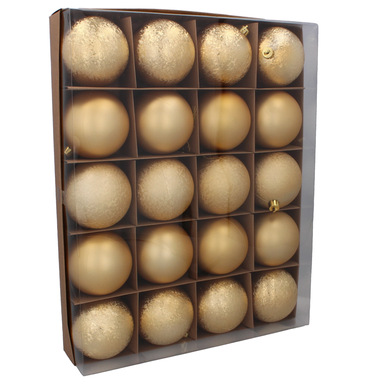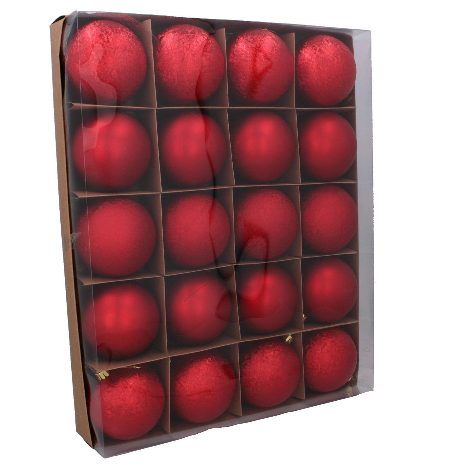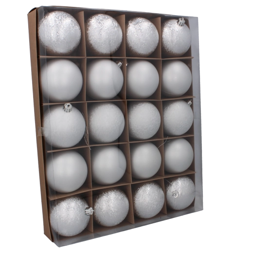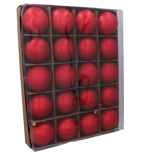 Ten uniwersalny zestaw zawiera 20 bombek: 8× matowe, 4× fakturowane i 8× błyszczące. Dzięki przemyślanej proporcji wykończeń z łatwością stworzysz głębię i iskrę na choince, wieńcach i w dekoracyjnych aranżacjach. Kolory czerwony, złoty i srebrny pięknie ze sobą współgrają i podkreślają klasyczną świąteczną atmosferę.